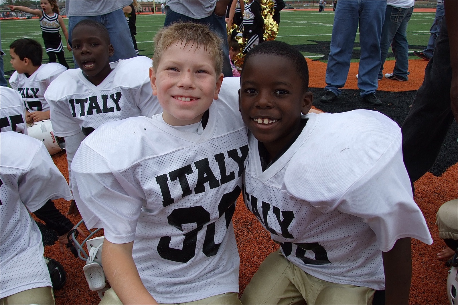 The IYAA C-Team Gladiators show grit on season’s biggest stage, the Superbowl! « previous story album next » Plenty to be proud about! Byron Davis(99), Isaac Gray(30) and Julius Williams(88) celebrate their effort after the Suerbowl. (Barry Byers) Download original photo