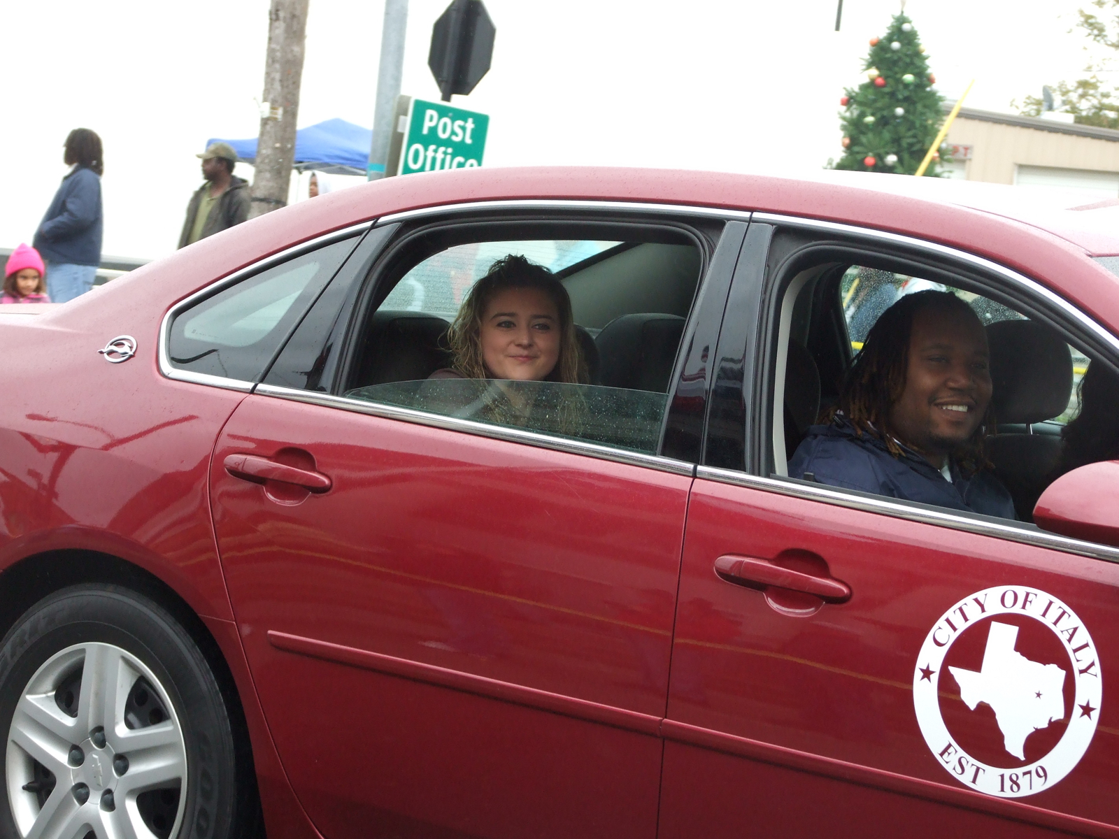 Italy Hosts Christmas Parade and Festival « previous story album next » The City of Italy car has smiling folks. (Anne Sutherland) Download original photo