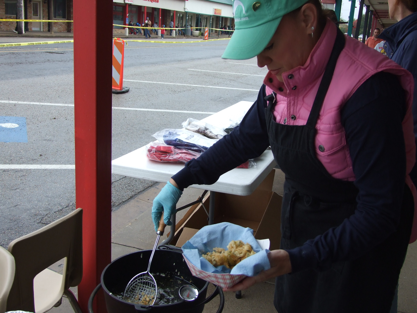 Additional Photos for Italy Christmas Festival « previous story album next » Cynthia Teer takes the fried pickles out of the fryer for the customers standing in line. (Anne Sutherland) Download original photo
