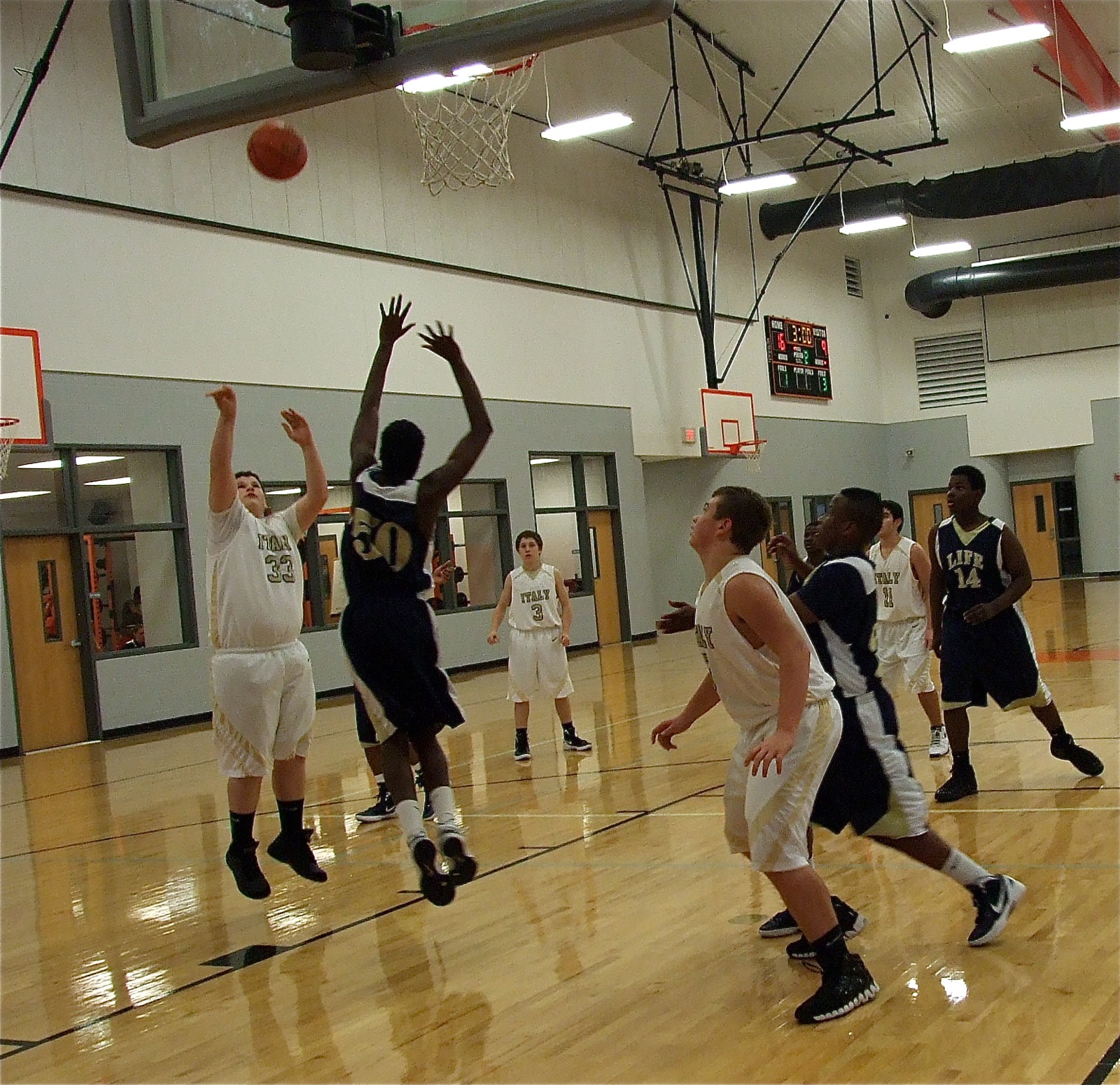 Italy’s JV Gladiators play solid basketball in preparation for district play « previous story album next » Italy’s John Byers(33) puts up the shot over a Lion defender. (Barry Byers) Download original photo