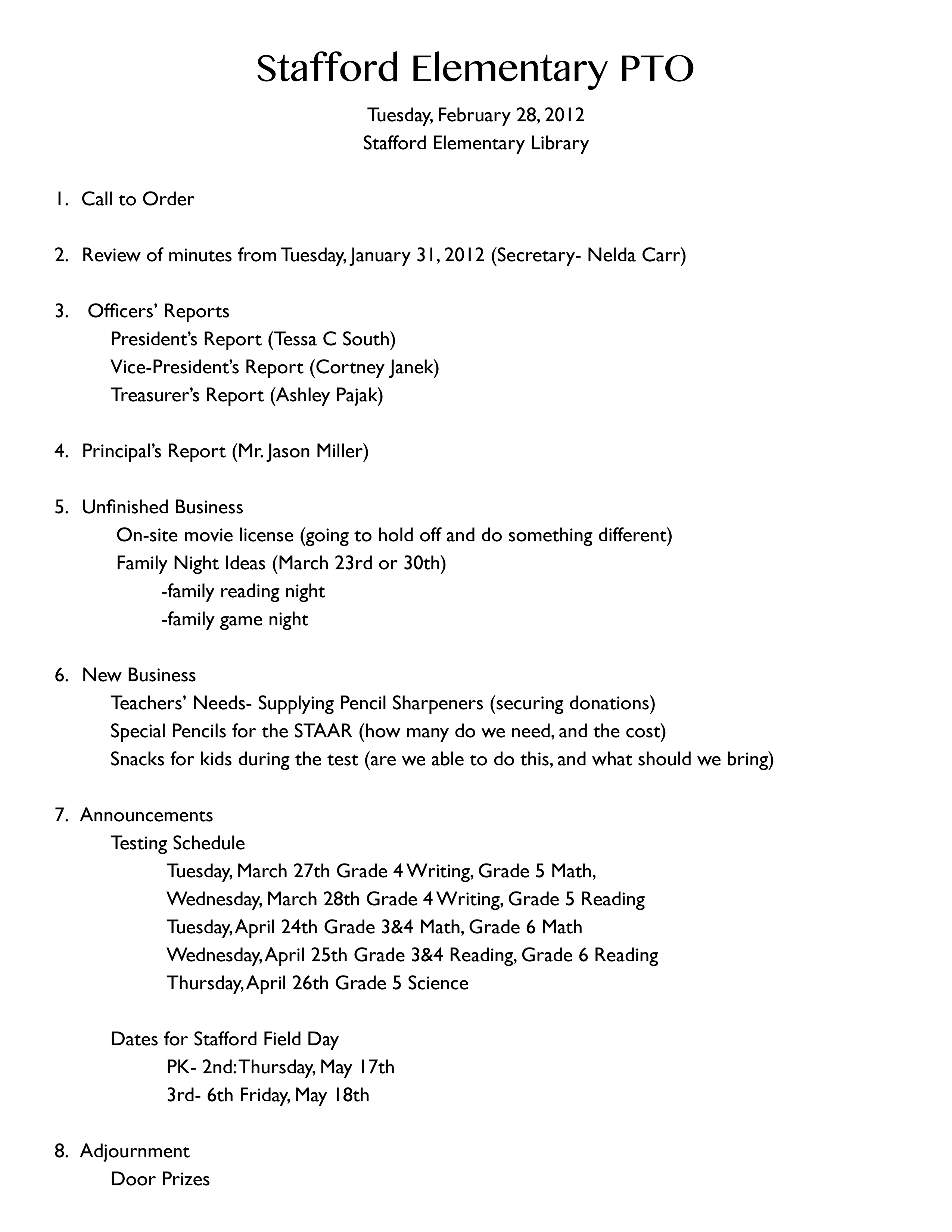 Stafford PTO meeting scheduled for Tuesday, February 28, 2012 « previous story album next » Download original photo