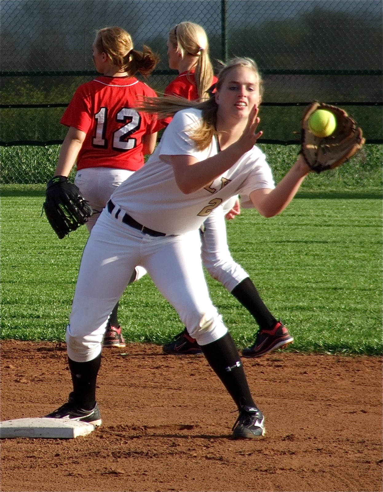 Lady Gladiators in full stride after 2-0 start in district « previous story album next » Freshman Madison Washington(2) covers second base during a pre-game practice drill. (Barry Byers) Download original photo