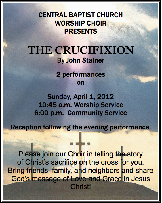 The Central Baptist Church Worship Choir presents The Crucifixion « previous story album next » Download original photo