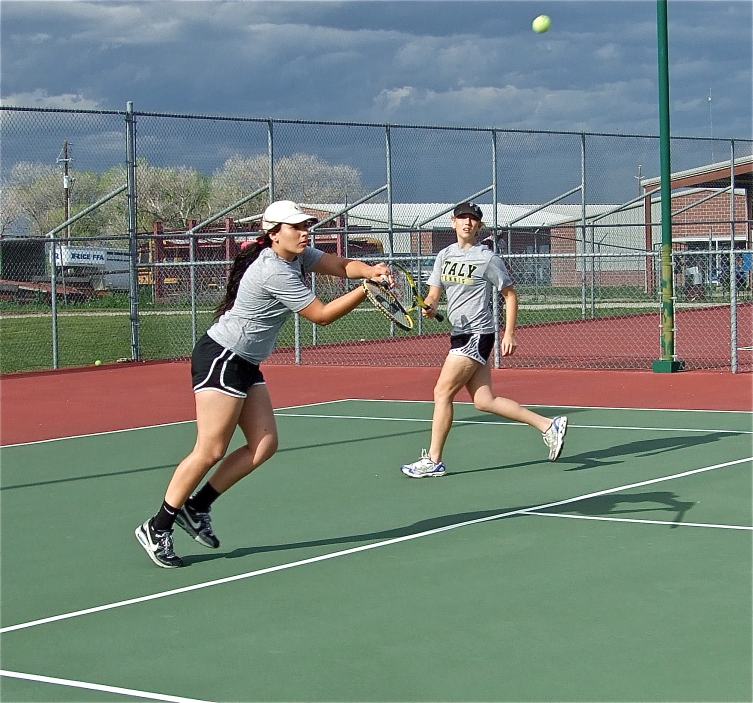 What’s all that racket? Italy Tennis travels to Rice for a practice session « previous story album next » Alyssa Richards returns the ball while Megan Richards backs her little sister up. (Barry Byers) Download original photo