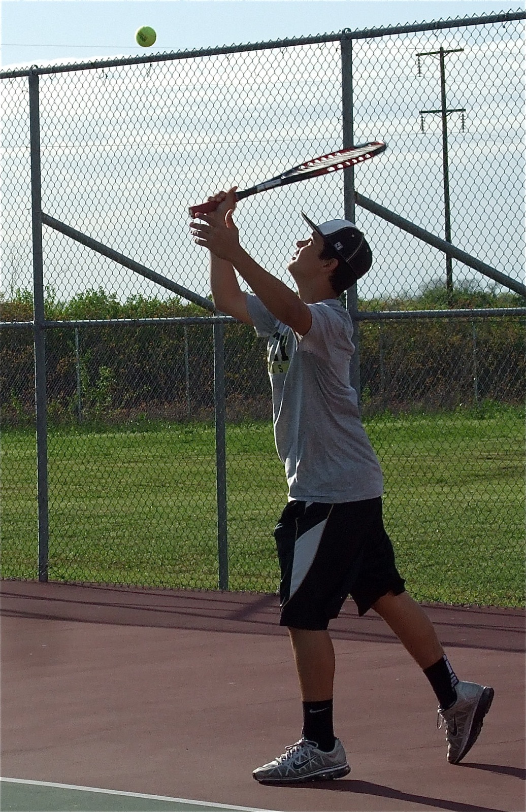 What’s all that racket? Italy Tennis travels to Rice for a practice session « previous story album next » Italy’s Reid Jacinto serves like a pro. (Barry Byers) Download original photo