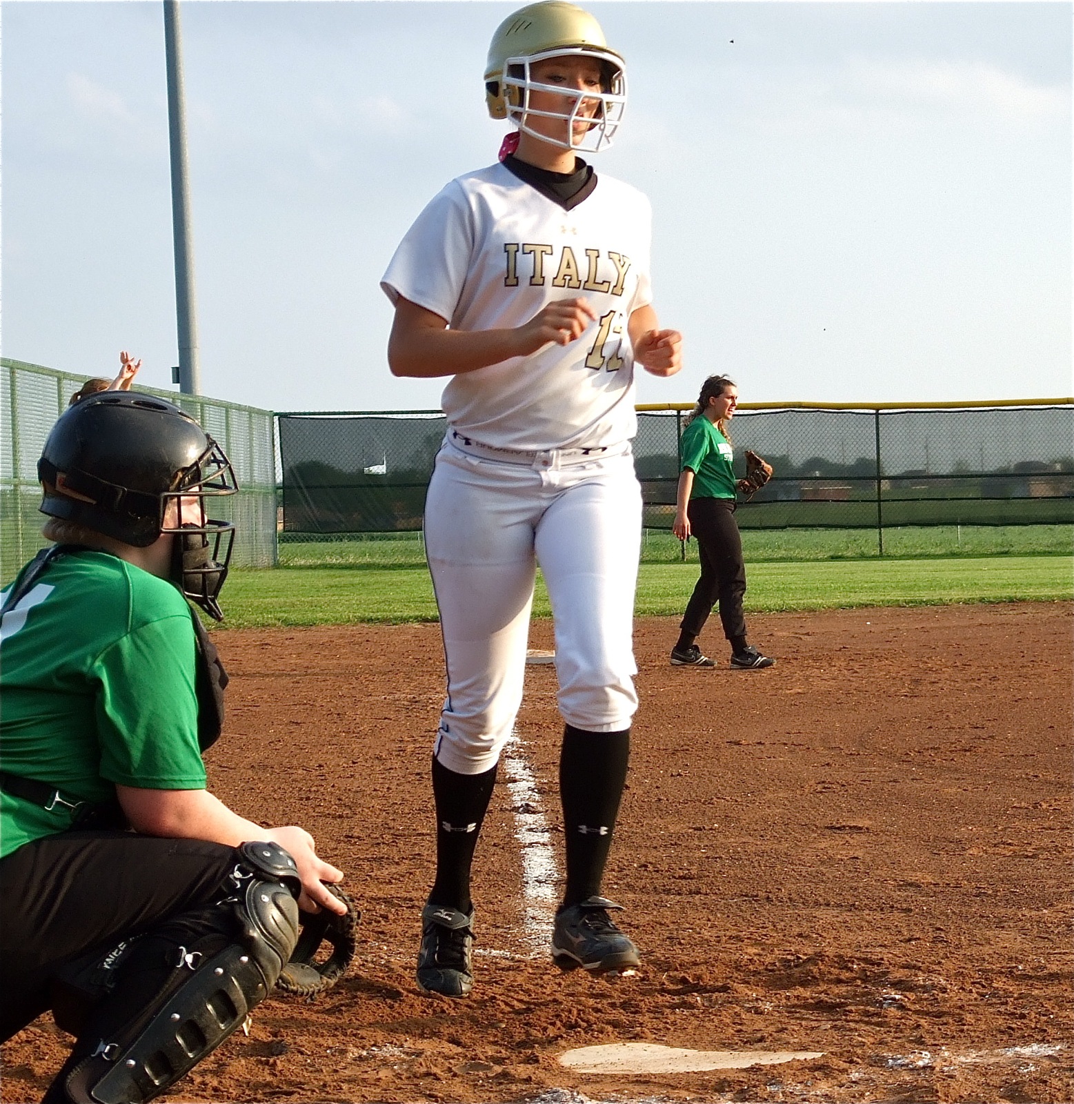 Lady Gladiators route Rio Vista 12-0 while Gladiators clip Eagles 10-5 « previous story album next » Megan Richards(17) reaches home plate for an Italy score. (Barry Byers) Download original photo