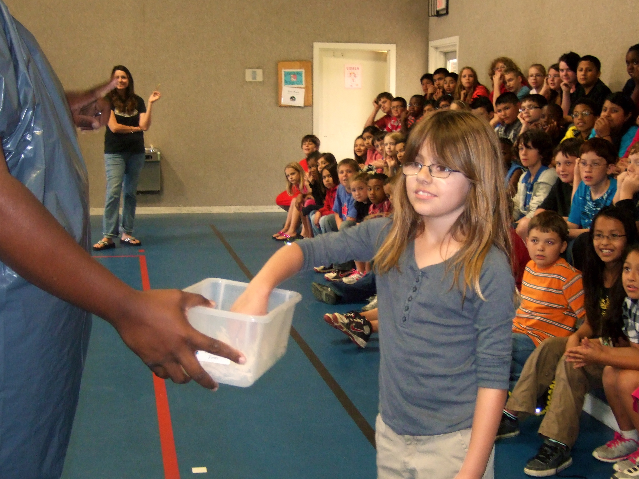 Look who got Mr. Miller with a pie! « previous story album next » Katy South picks the next name out of the hat. (Cindy Sutherland) Download original photo