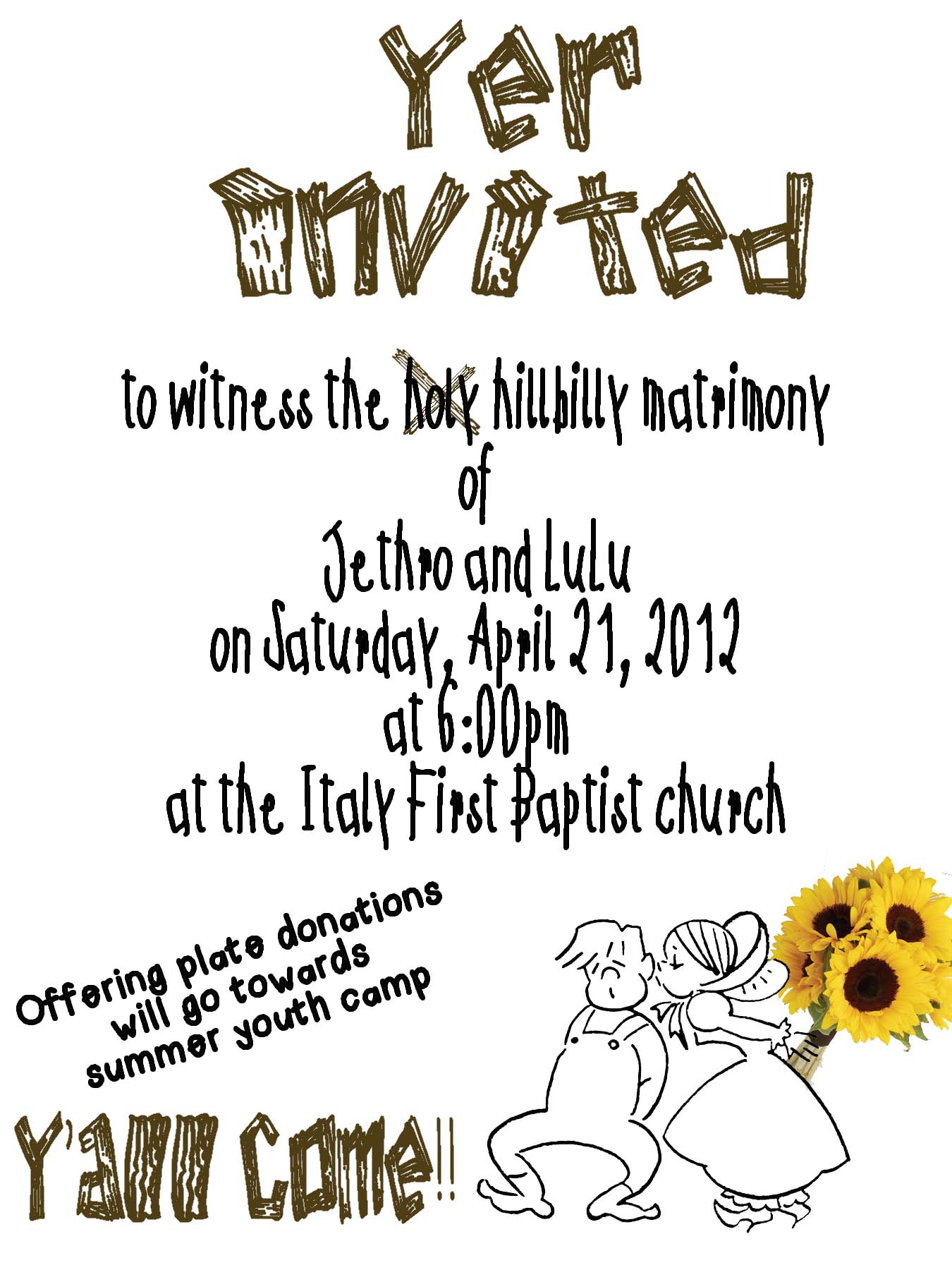 Upcomin’ nuptials in tha werks— the Hillbilly Wedding « previous story album next » Download original photo