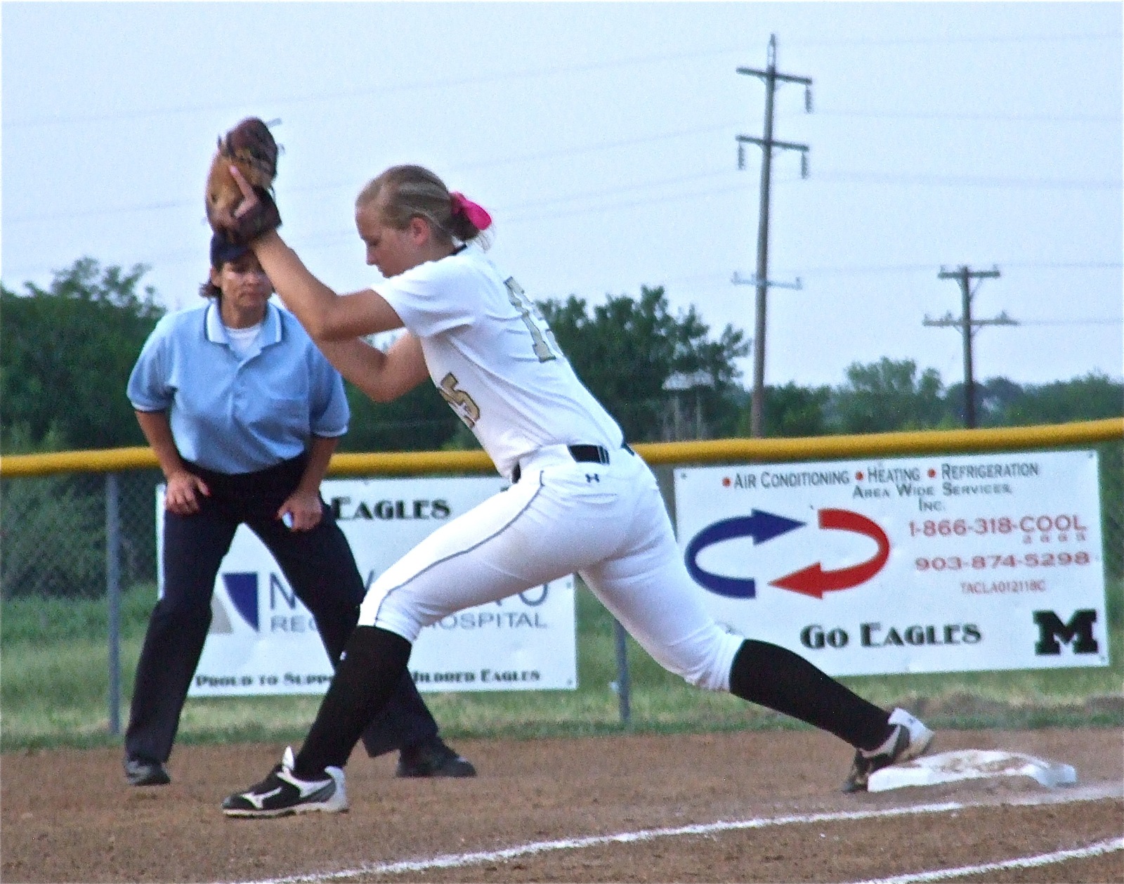 Lady Gladiators rally late to win game 1 of the Area Championship over Mildred « previous story album next » Jaclynn Lewis(15) makes the grab for another Italy out at first base. (Barry Byers) Download original photo