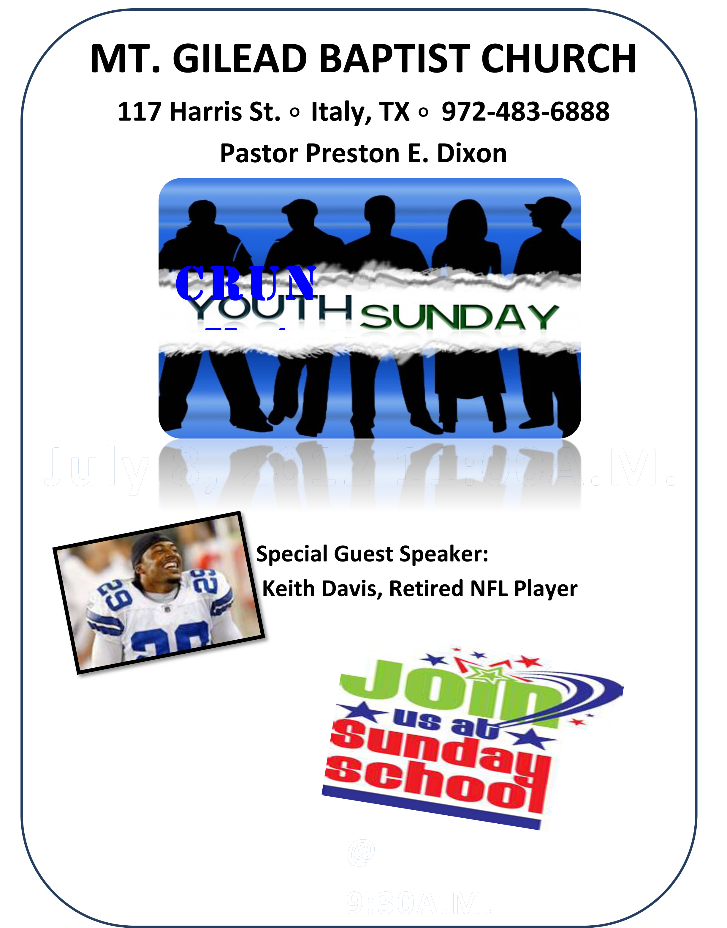 Special speaker at Mt. Gilead Baptist Church on Sunday, July 8 « previous story album next » Download original photo