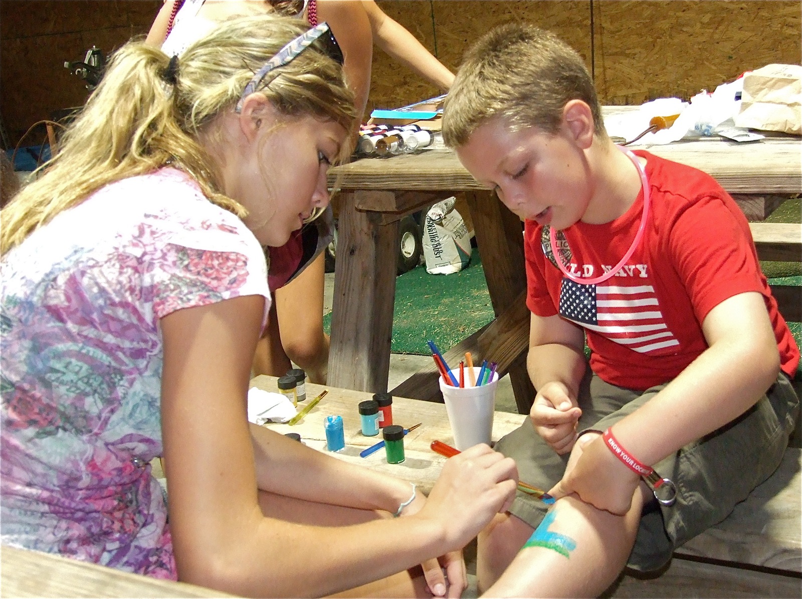 More Guns vs. Hoses pictures and fireworks footage « previous story album next » Halee Turner leg paints Brock Hollwywood to help raise money for “Shop with a Cop” (Barry Byers) Download original photo