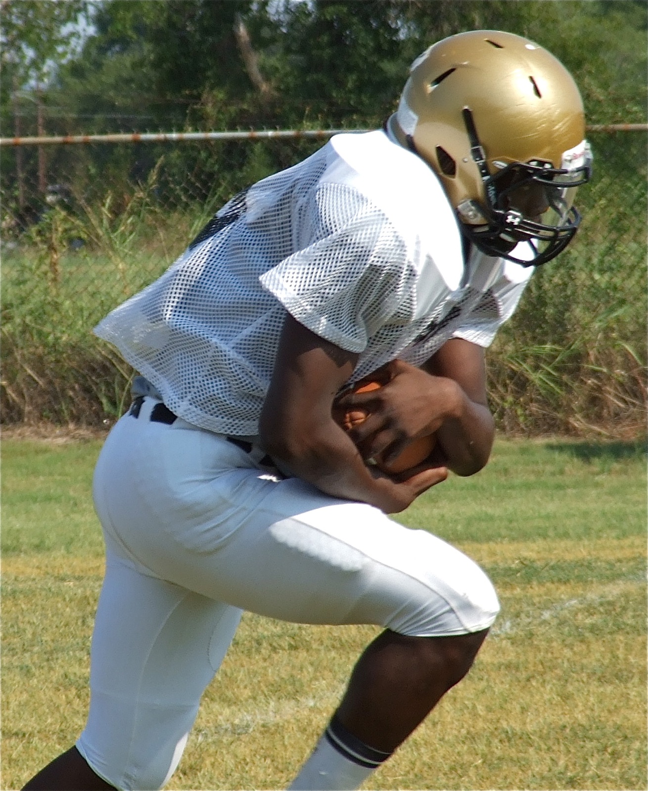 Gladiators armor up and lay the ground work for the upcoming season « previous story album next » Senior tailback Ryheem Walker is ready to pound and gain ground against the competition. (Barry Byers) Download original photo
