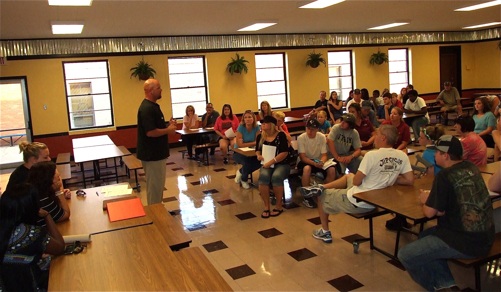 Students and parents excited during Meet the Teacher Night at Italy High School « previous story album next » AD/Head Football Coach Hank Hollywood talks with visitors regarding the sports programs and long-term goals. (Barry Byers) Download original photo