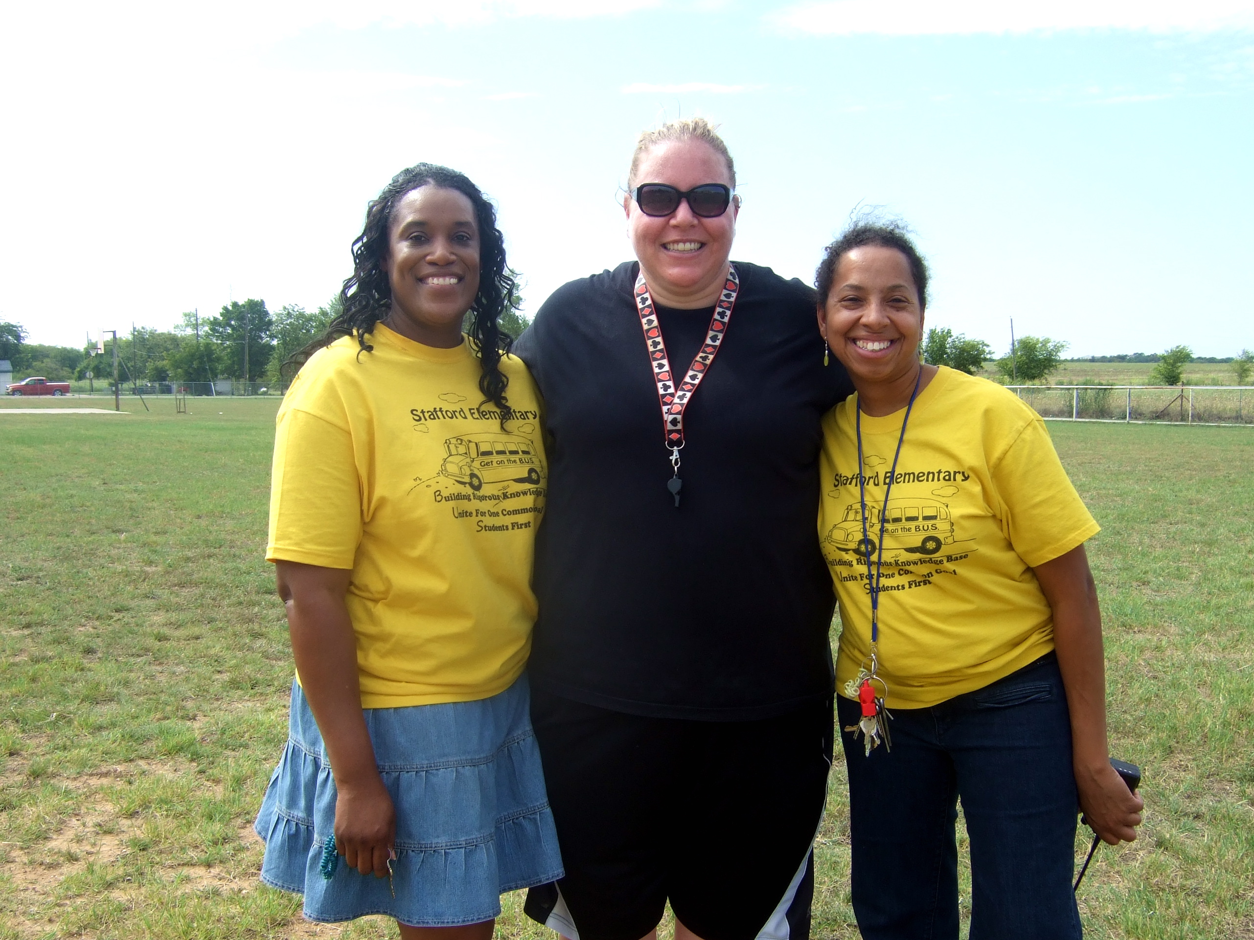 Stafford Elementary Students—United for a common goal « previous story album next » Felicia Burkhalter (library aid), Melissa Fullner (P.E. teacher) and Principal Wilson all at Field Day. (Cindy Sutherland) Download original photo