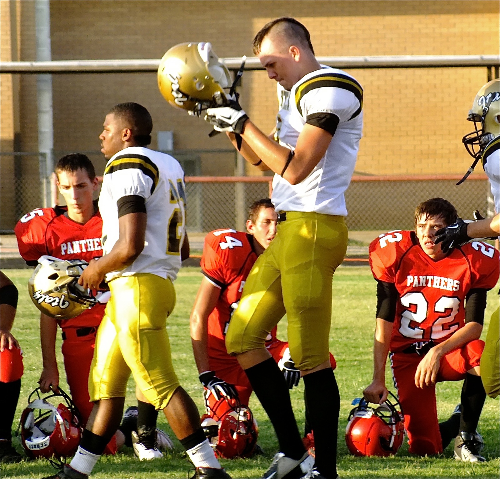 More exciting images from the Italy’s season opening win over Maypearl « previous story album next » Italy’s Jalarnce Jamal Lewis(21), Cole Hopkins(9) and the rest of their Gladiator teammates join Maypearl for a pregame prayer. (Barry Byers) Download original photo
