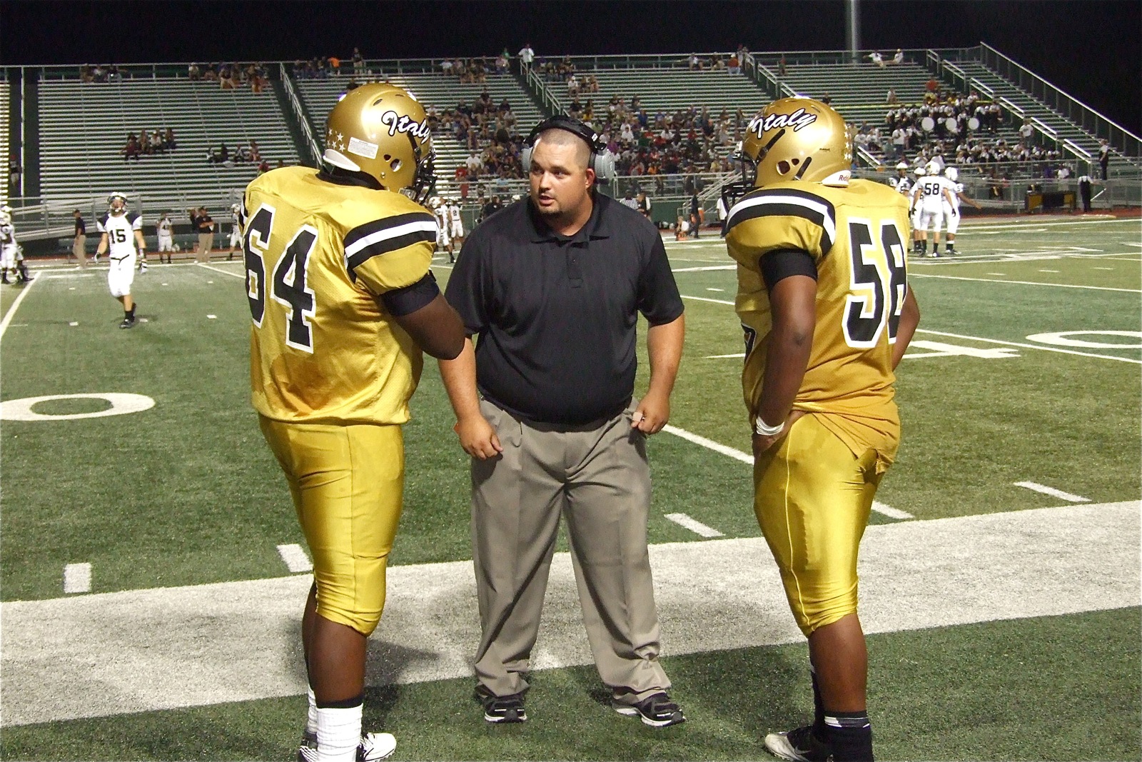 Gladiators give a great effort during Dale Hansen Football Classic « previous story album next » Gladiator line coach Brandon Duncan talks with Adrian Reed(64) and Darol Mayberry(58). (Barry Byers) Download original photo