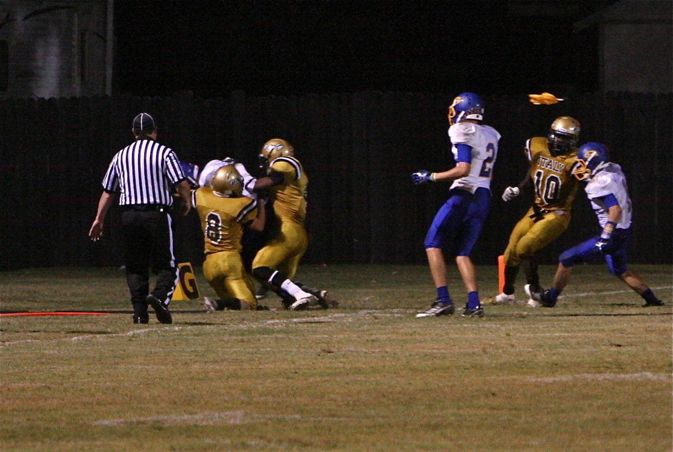 Gladiators lose a close game at home to Sunnyvale 21-14 « previous story album next » Hayden Woods(8) and Trevon Robertson(4) force Sunnyvale out near Italy’s goal line. (Barry Byers) Download original photo