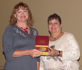 Ellis County Equine Association Presents Awards « previous story album next » Julie Hinz of Italy, left, won the Junior Mares at Halter buckle with her Paint Horse mare Mighty Sassy Thing. Download original photo