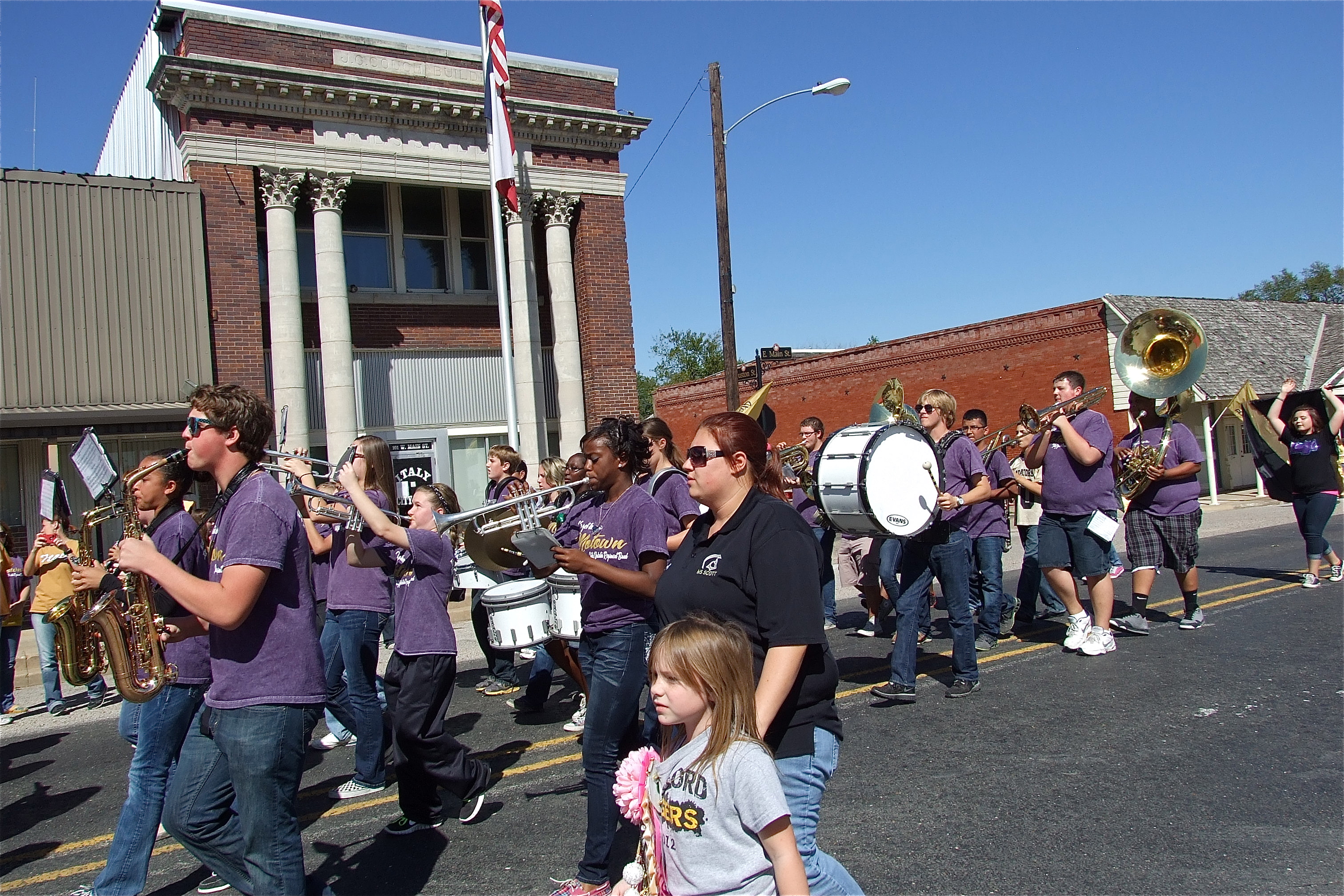 Italy’s Homecoming Parade and Pep Rally kickoff Friday’s events « previous story album next » The award-winning Gladiator Regiment Marching Band blares the “Beat of Champions” down main street, between the buildings and into the surrounding neighborhoods. (Barry Byers) Download original photo