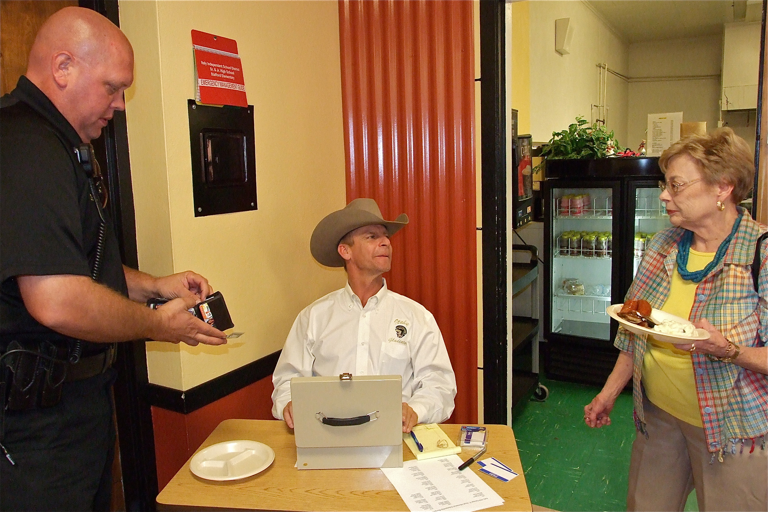 The George E. Scott Memorial Scholarship Dinner hits the spot before the game « previous story album next » Curtis Riddle charges Chief Diron Hill for a plate while talking with Jane Gorman Acker. (Barry Byers) Download original photo
