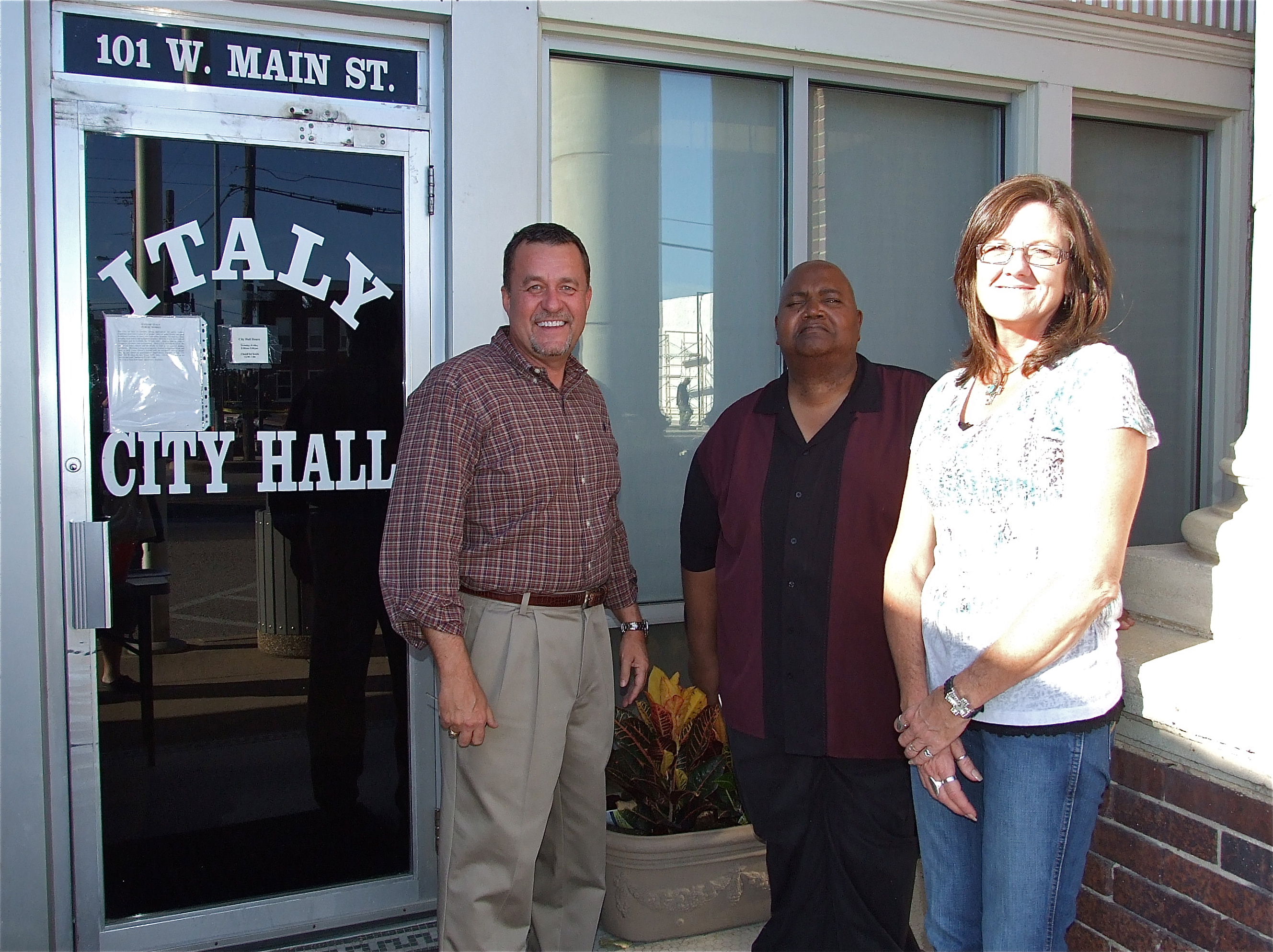 Justice of the Peace Jackie Miller, Jr., City of Italy’s Mayor Frank Jackson and City Manager Terri Murdock enjoy the hauntingly huge turnout of trick-or-treaters in downtown Italy. (Barry Byers)
