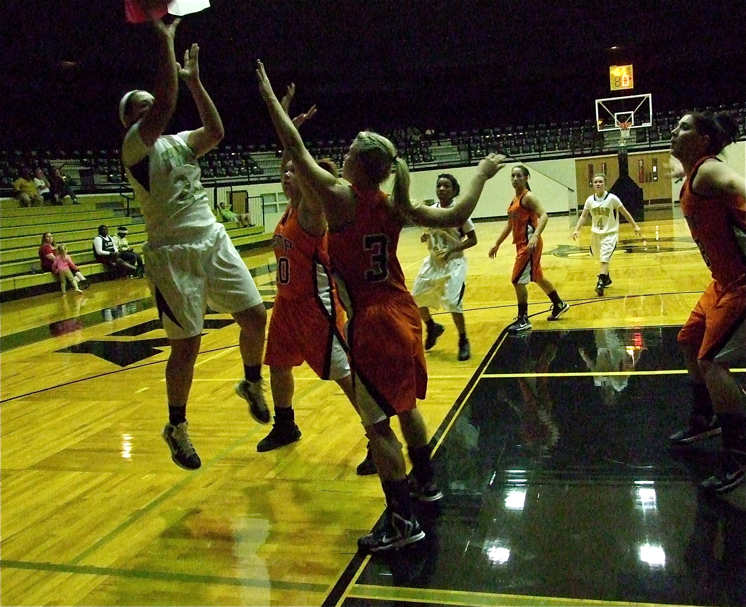 Lady Gladiators play first home game of 2012-13 season « previous story album next » Lady Gladiator Alyssa Richards(24) sinks a baseline jumper over Kemp defenders. (Barry Byers) Download original photo
