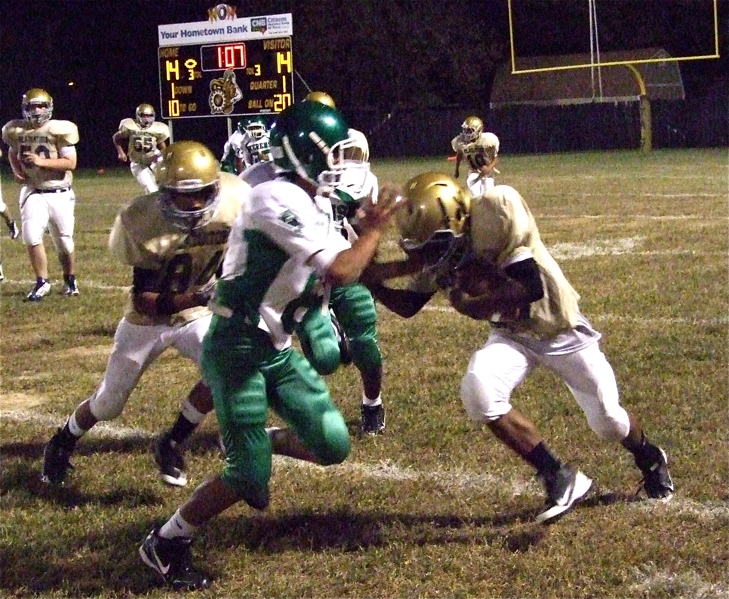 Points ring up like an arcade game but the IJH squad finishes with highest score « previous story album next » Kendrick Norwood(20) lowers the boom on a Keren’s tackler with Fabian Cortez(84) blocking downfield. (Barry Byers) Download original photo