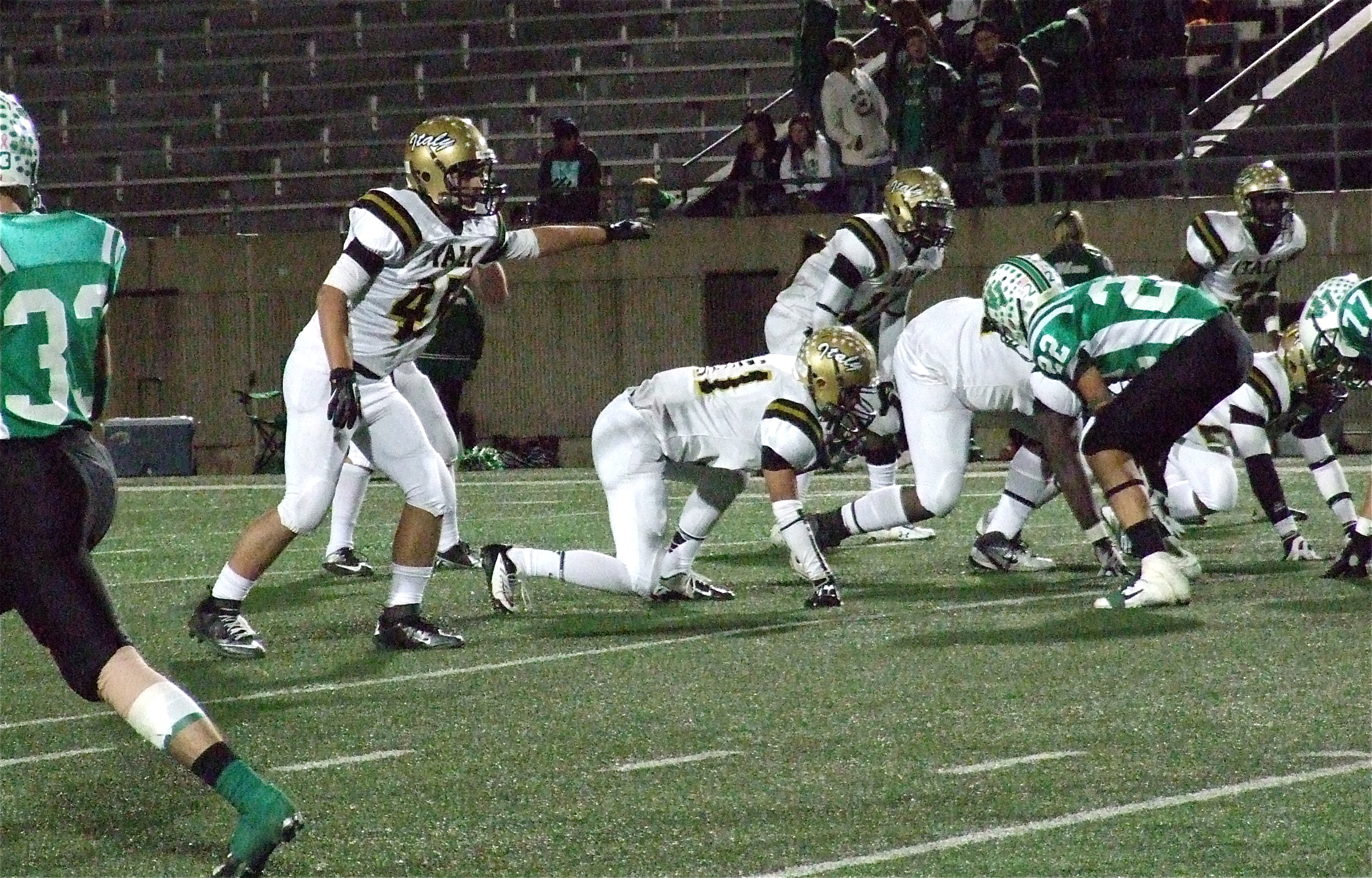 It’s a celebration, Gladiators hoist area championship trophy high! « previous story album next » Old eagle eye, Hunter Merimon(45), spots a false start by the Eagles and alerts the officials. (Barry Byers) Download original photo