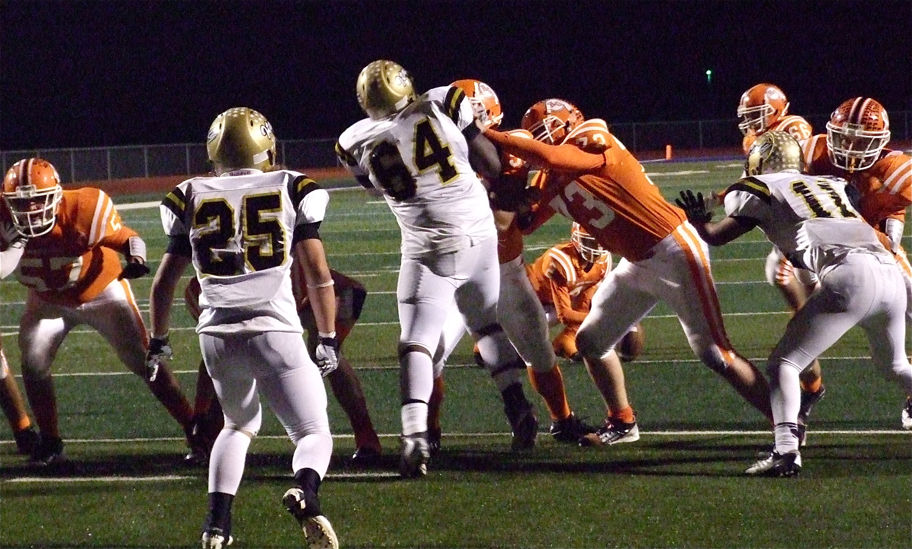 Italy continues playoff run by upsetting Honey Grove 33-20 in regional semifinal « previous story album next » Gladiators’ Shadrach Newman(25), Adrian Reed(64) and Reid Jacinto(11) help ensure a missed point-after try by Honey Grove. (Barry Byers) Download original photo