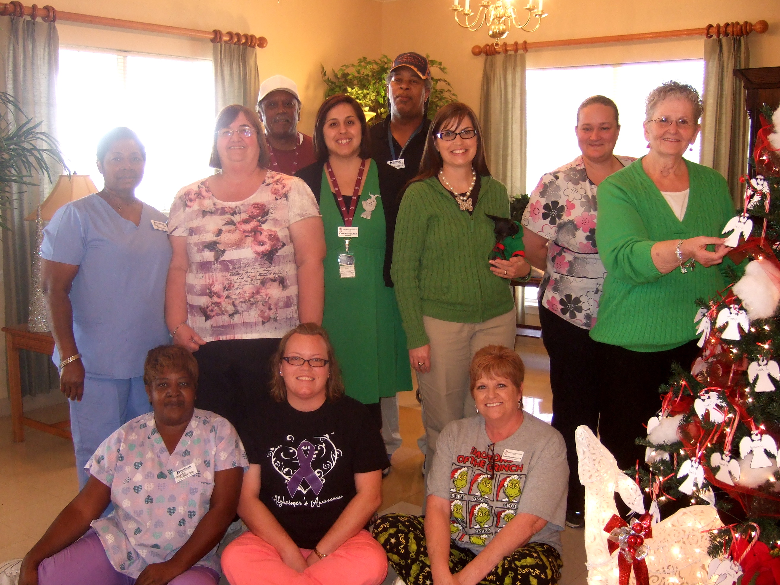 Trinity Mission staff: Georgia Stanford, Emily Finley, Dodie Chambers, Mary Copeland, Carolyn Powell, Amanda Wilsford, Darla Gardner, Lisa Marie (therapy dog), Michelle Ross, Paul Sanderford and Johnny Walker. (Cindy Sutherland)