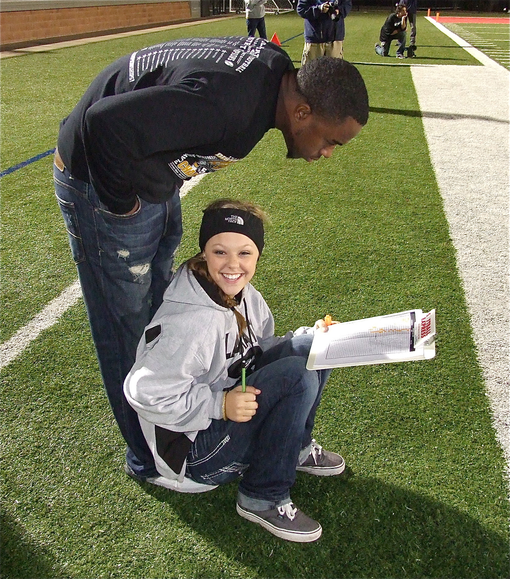 Gladiators finish playoff run with a 41-8 loss to Stamford « previous story album next » Stat keeper Bailey Eubank finds a way to relax and stay dry while Jasenio Anderson peers at the numbers. (Barry Byers) Download original photo