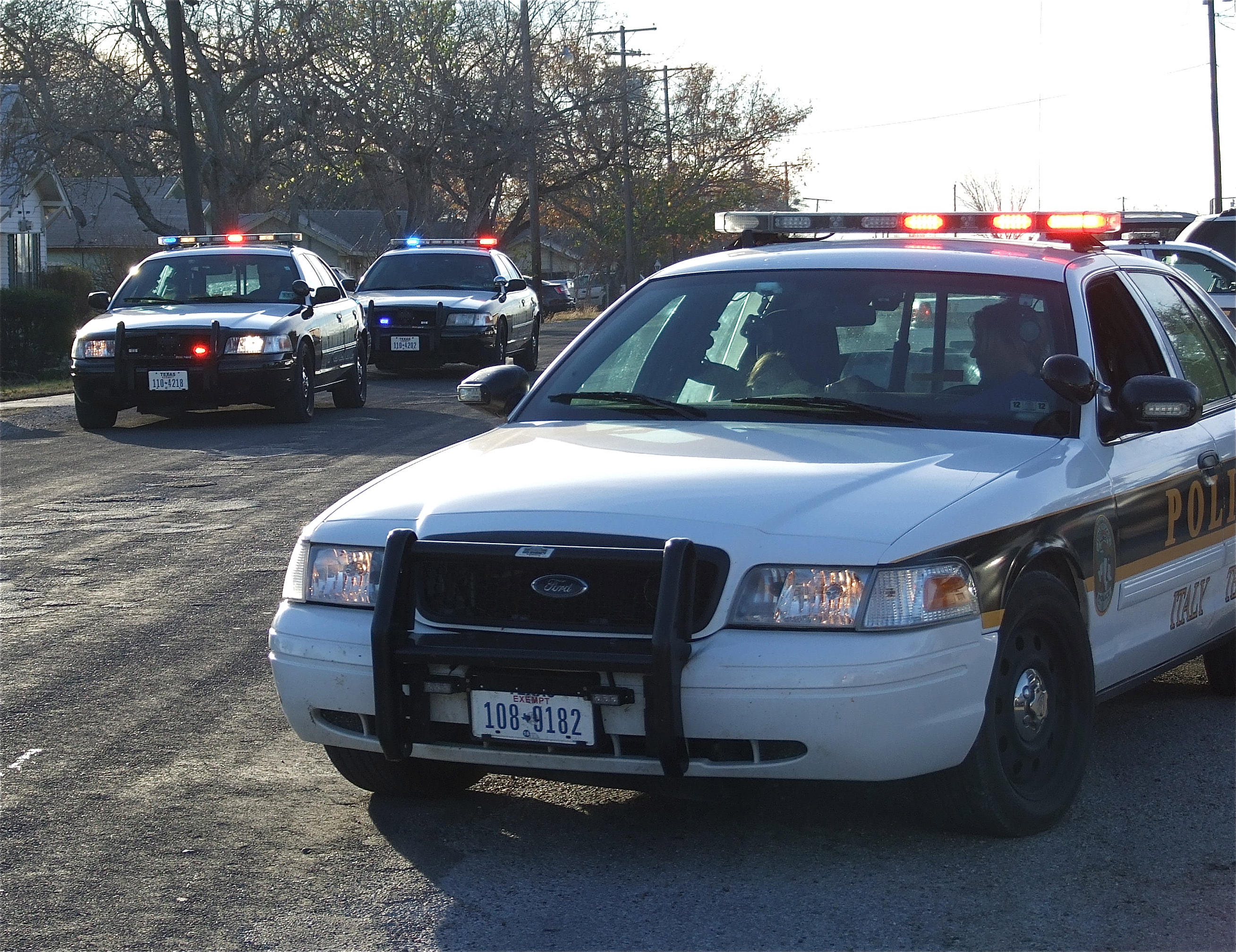 Six Stafford Elementary students “Shop with a Cop” for Christmas « previous story album next » Go, Go, Go! The Italy Police Department exits the Stafford Elementary parking to entourage the six students to Wal-Mart in Waxahachie for a “Shop with a Cop” spree. (Barry Byers) Download original photo