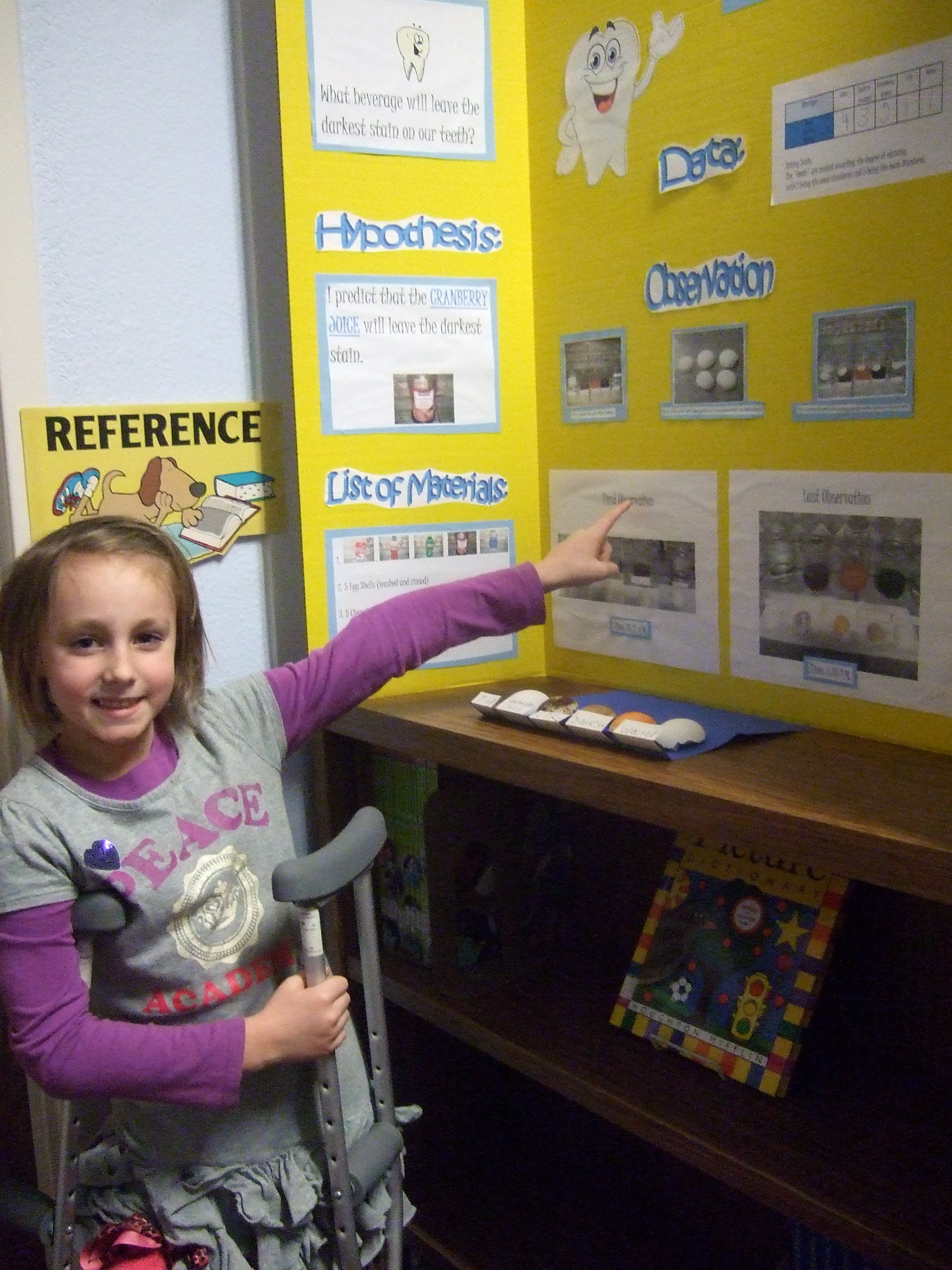 Science Fair at Stafford Elementary « previous story album next » Adyson Mathers (2nd grade) took first place for her science project – what beverage will stain your teeth the darkest? (Cindy Sutherland) Download original photo