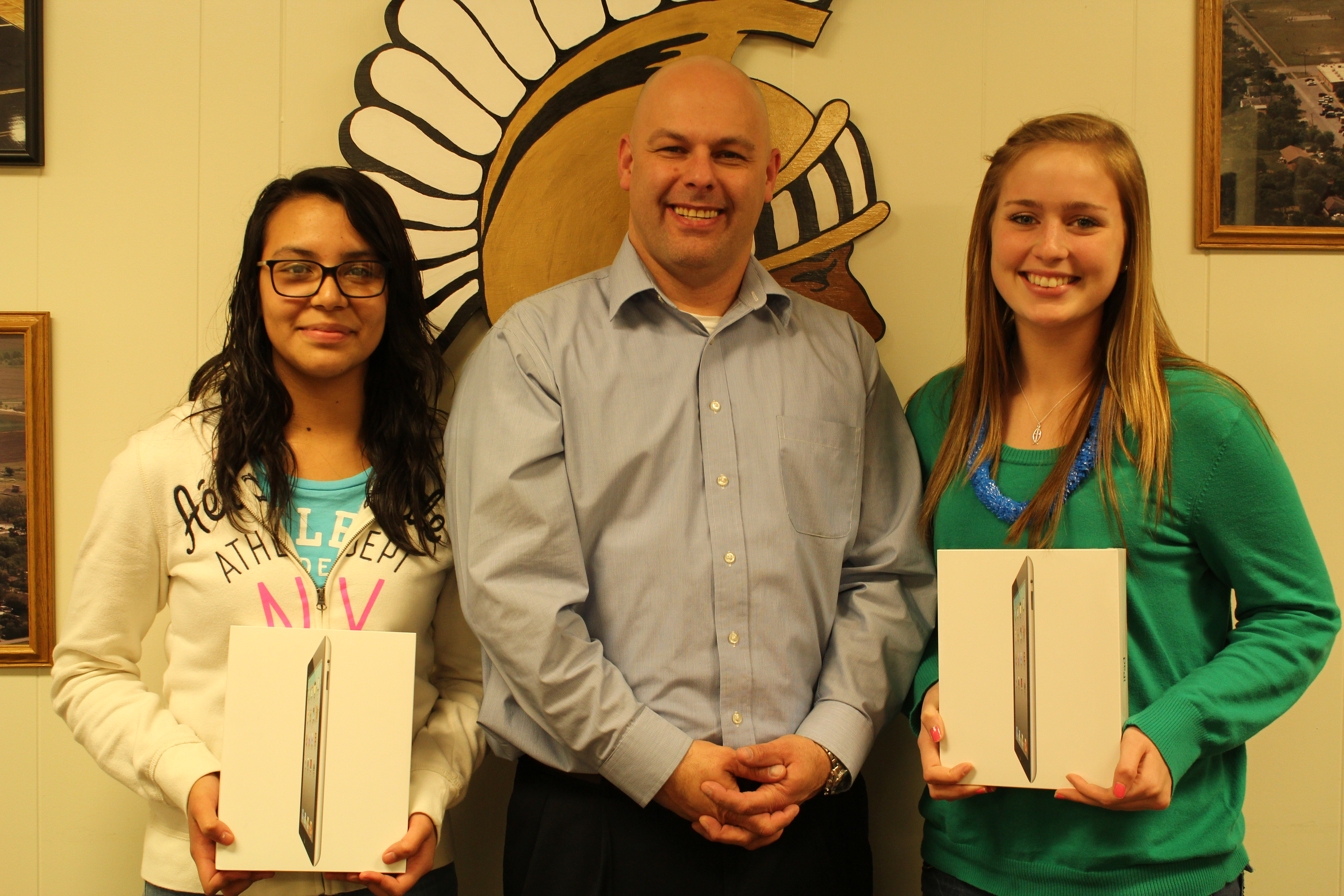 iPad awarded to IHS perfect attendance and honor roll students « previous story album next » L-R) Nadia Ramirez-Valles, IHS principal Lee Joffre, and Madison Washington (Submitted Photo) Download original photo