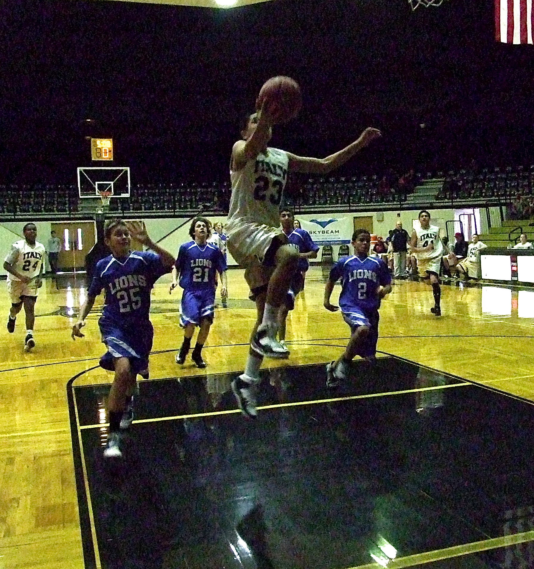 Italy’s JH boys basketball teams win 3-of-4 during Italy hosted tournament « previous story album next » David De La Hoya(23) tries to complete a fast break opportunity for Italy. (Barry Byers) Download original photo
