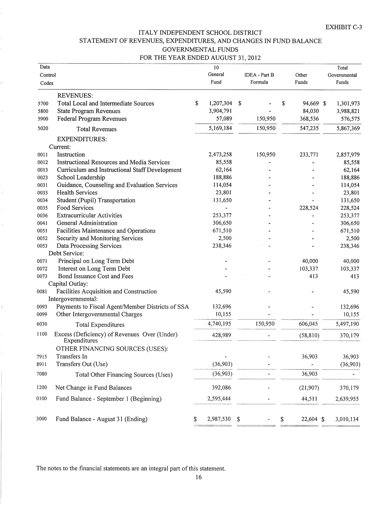Italy ISD Fiscal 2012 Year End Statement