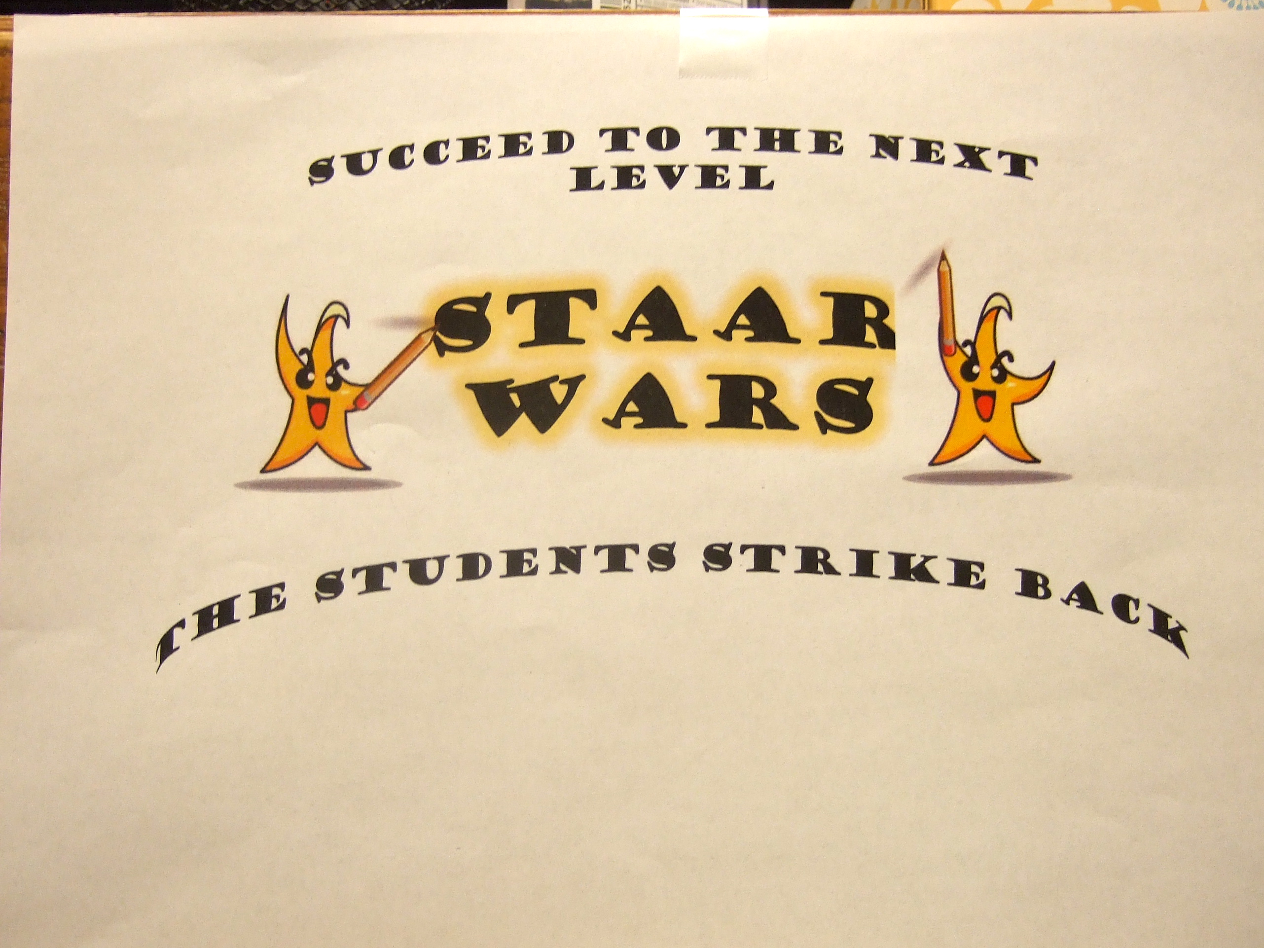 STAAR Wars the Students Strike Back « previous story album next » This is the design they came up with using “The Students Strike Back” from Jesus’s design, “Succeed to the Next Level” from Anthony Chambers design and the “Star Students” from Karman’s design. (Cindy Sutherland) Download original photo