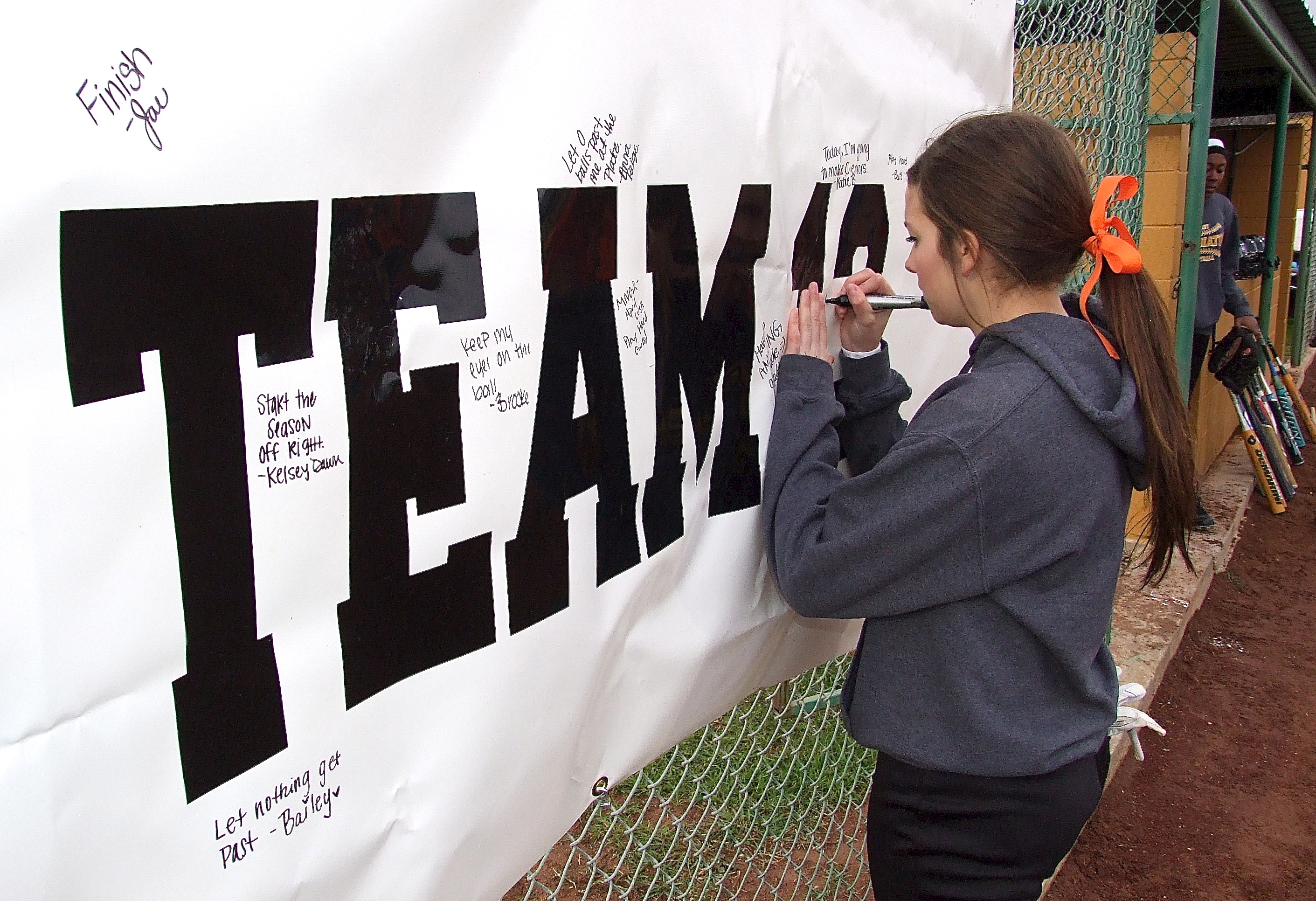 Lady Gladiators get 2013 season underway in debut with Hubbard Lady Jaguars « previous story album next » Senior Morgan Cokerham jots down her goal for the season opener. (Barry Byers) Download original photo