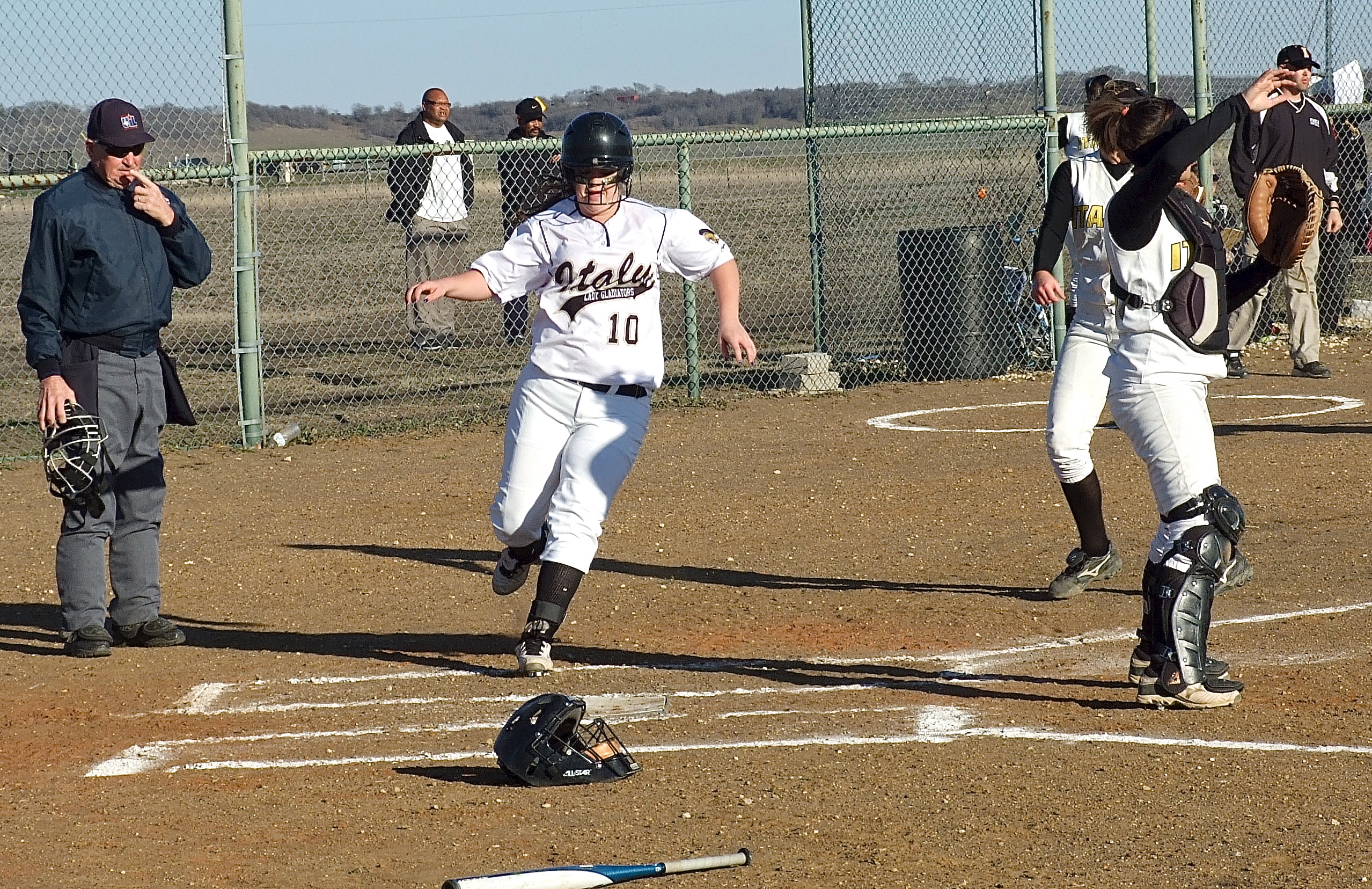 Lady Gladiators open district play with a 13-4 win over Itasca « previous story album next » Page Westbrook(10) finds home plate and taps it twice for good measure. (BARRY BYERS) Download original photo