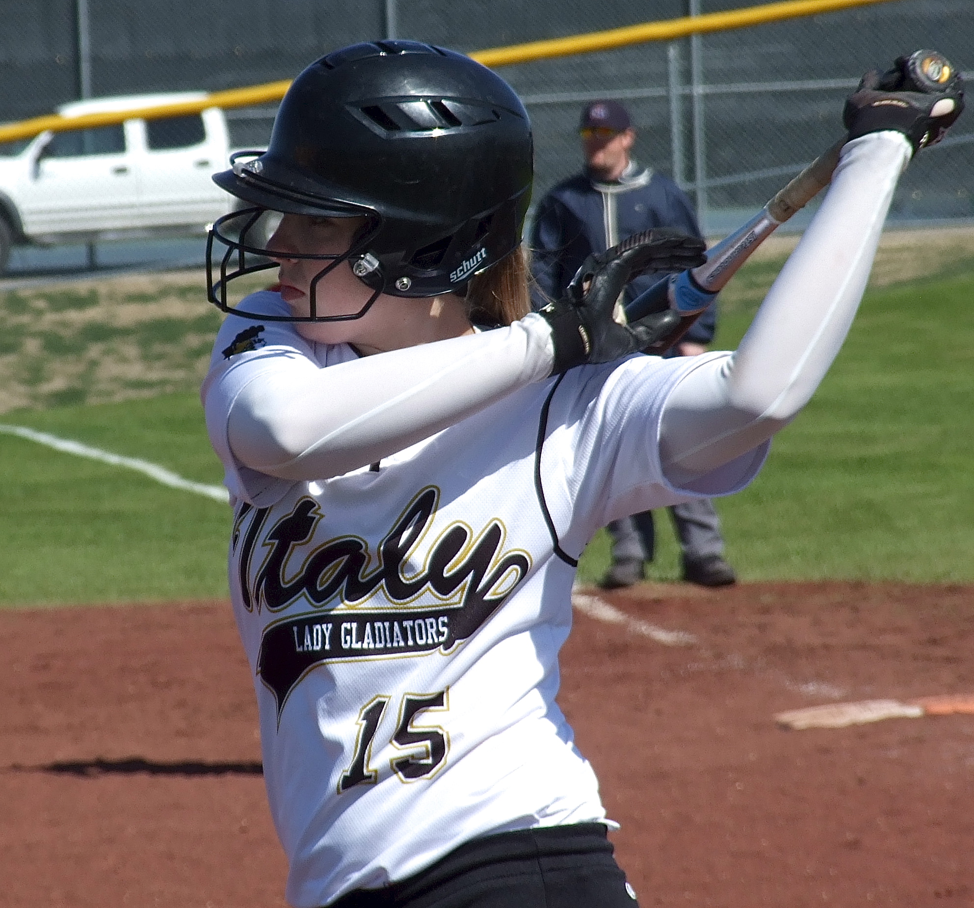 Lady Gladiators remain undefeated at 5-0 in district play midway thru the season « previous story album next » Jaclynn Lewis gets stretched before stepping into the batter’s box. (Barry Byers) Download original photo