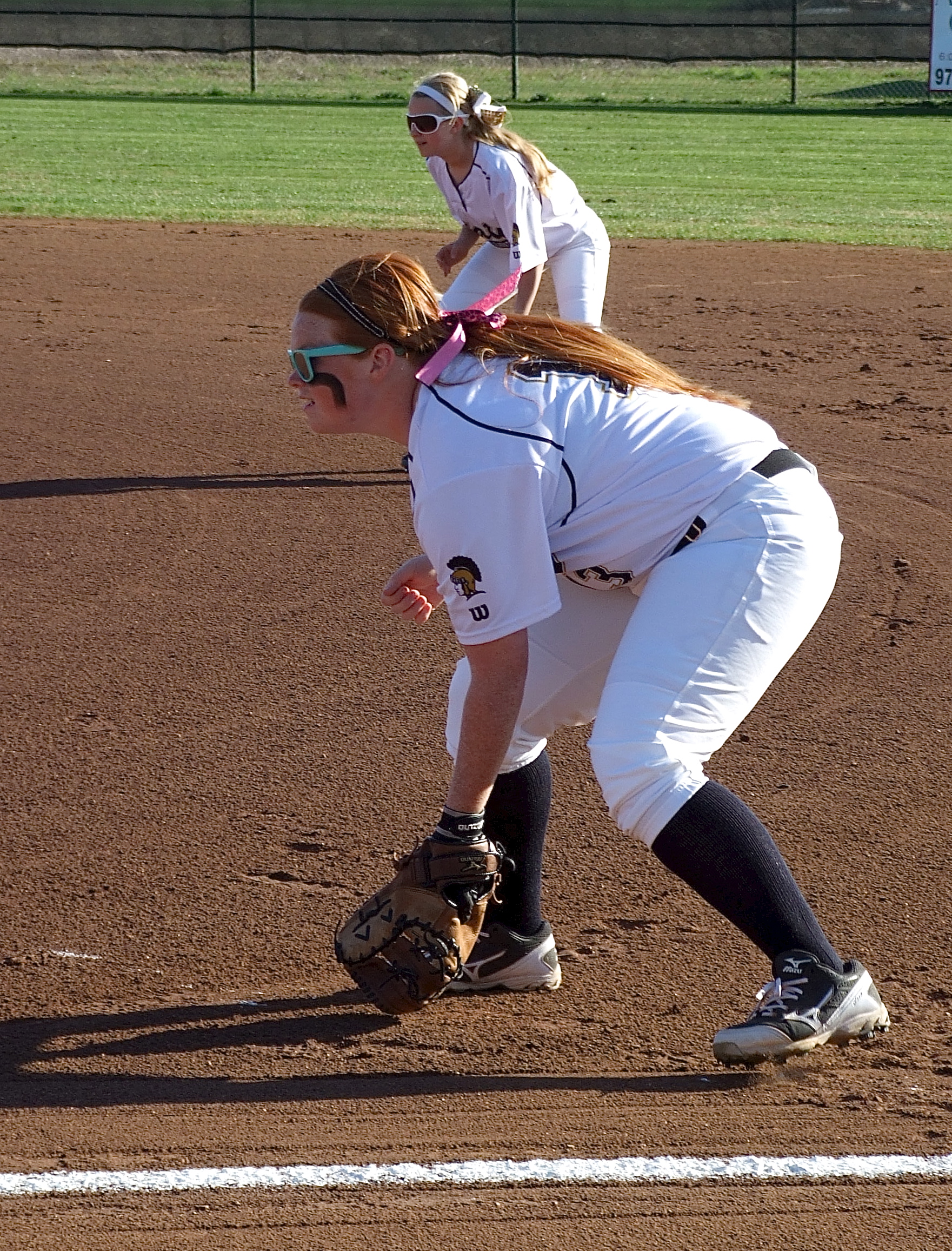 Lady Gladiators make quick work of Avalon, 15-0 in three-innings « previous story album next » First baseman Katie Byers(13) and second baseman Britney Chambers(4) help keep any Eagles from reaching the first base bag. (Barry Byers) Download original photo