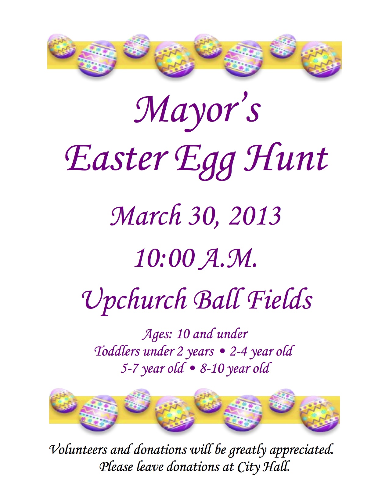 Annual Mayor’s Easter Egg hunt planned for March 30 « previous story album next » Download original photo