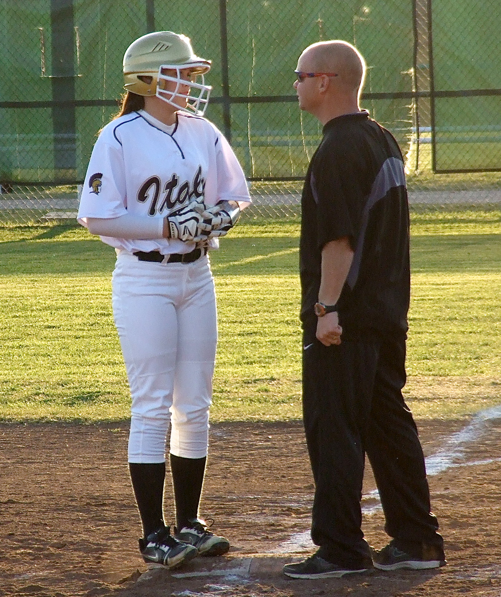 Additional images from the Lady Gladiators dramatic 6-5 comeback win over Itasca « previous story album next » Lillie Perry talks with Lady Gladiator first base coach Michael Chambers. (Barry Byers) Download original photo