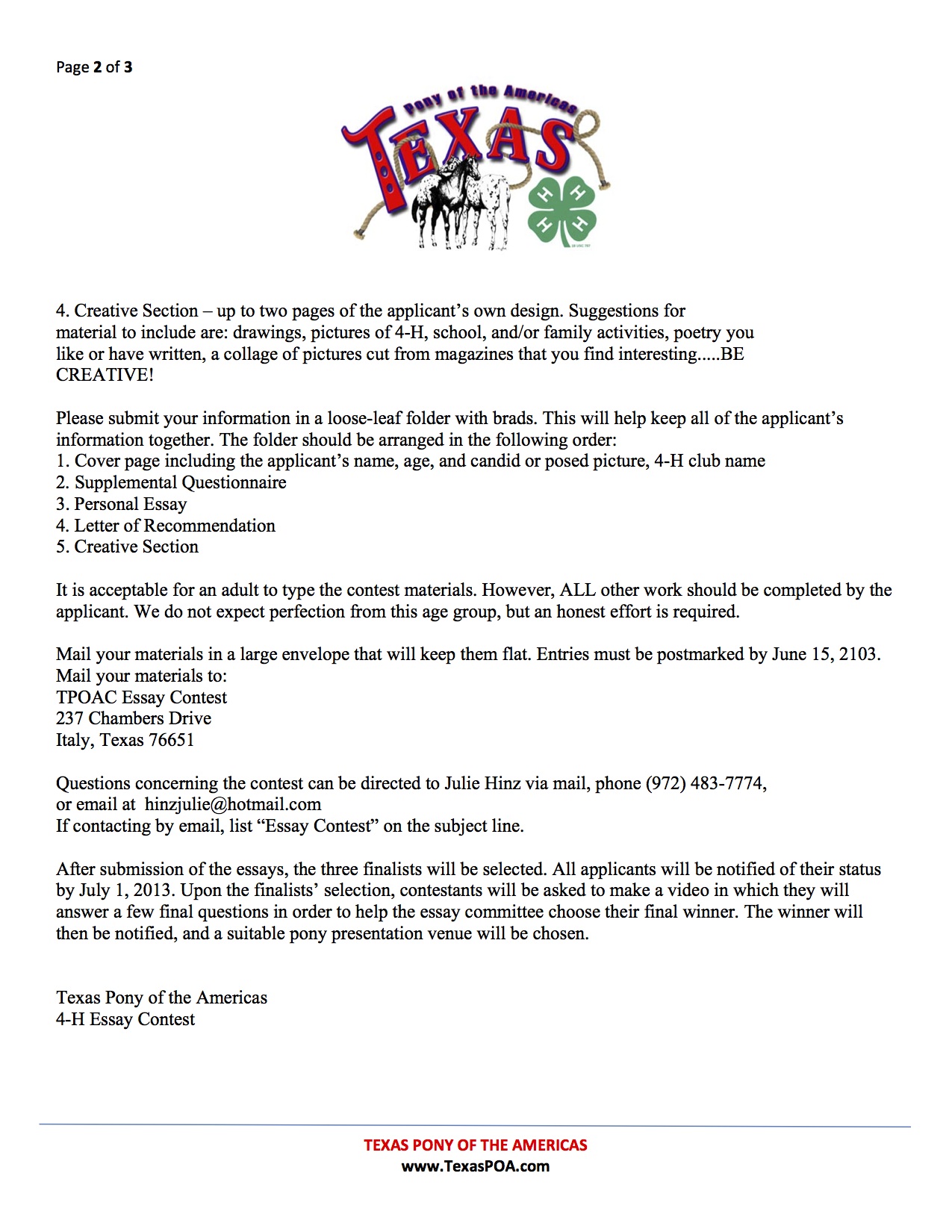 Win a POA—Texas 4-H Essay Contest « previous story album next » Essay Contest Rules – page 2 (Julie Hinz) Download original photo