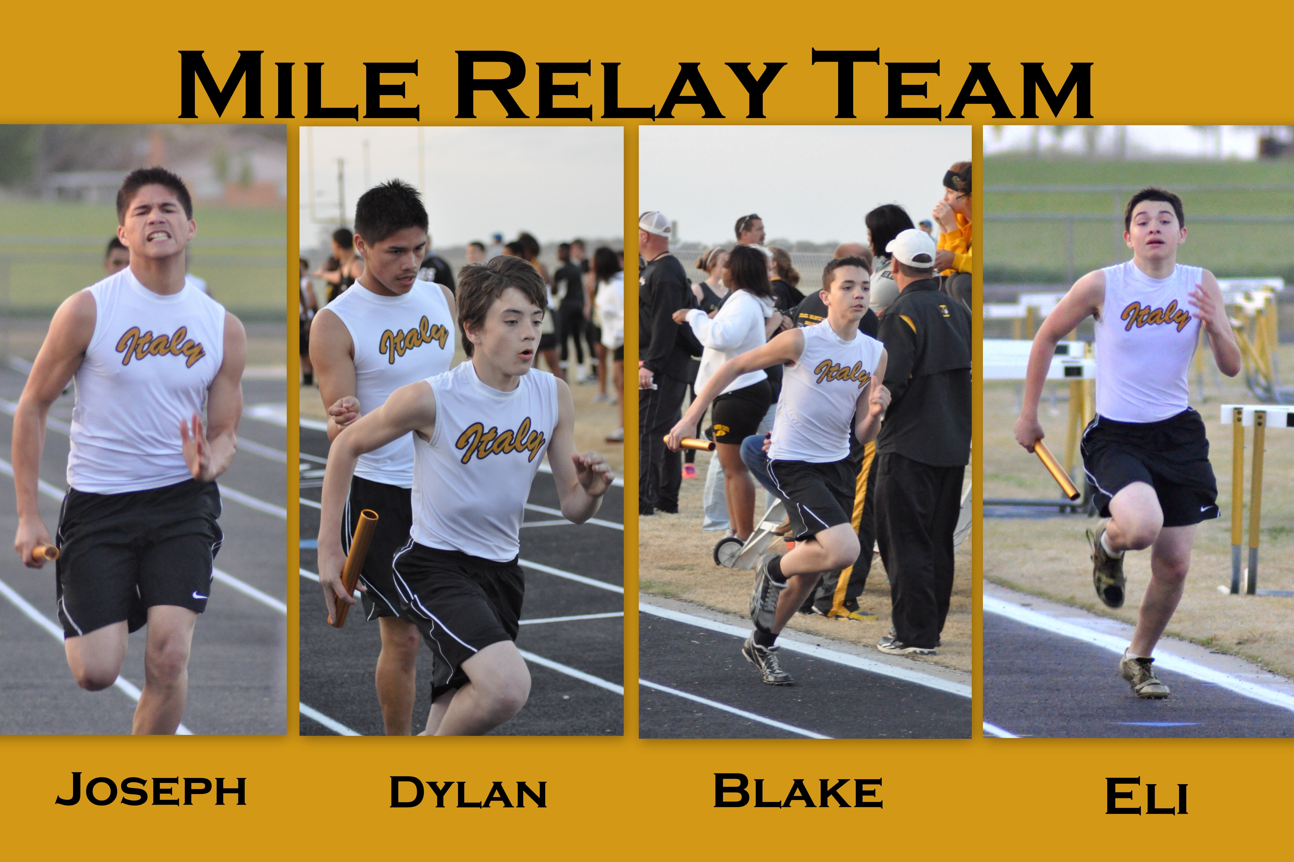 Italy’s track results from the Junior High Wampus Cat Relays held in Itasca « previous story album next » Italy 8th graders, Joseph Celis, Dylan McCasland, Blake Brewer and Eli Garcia finish in 2nd place during the 4×400m relay during the Wampus Cat Relays. (Davee Garcia) Download original photo