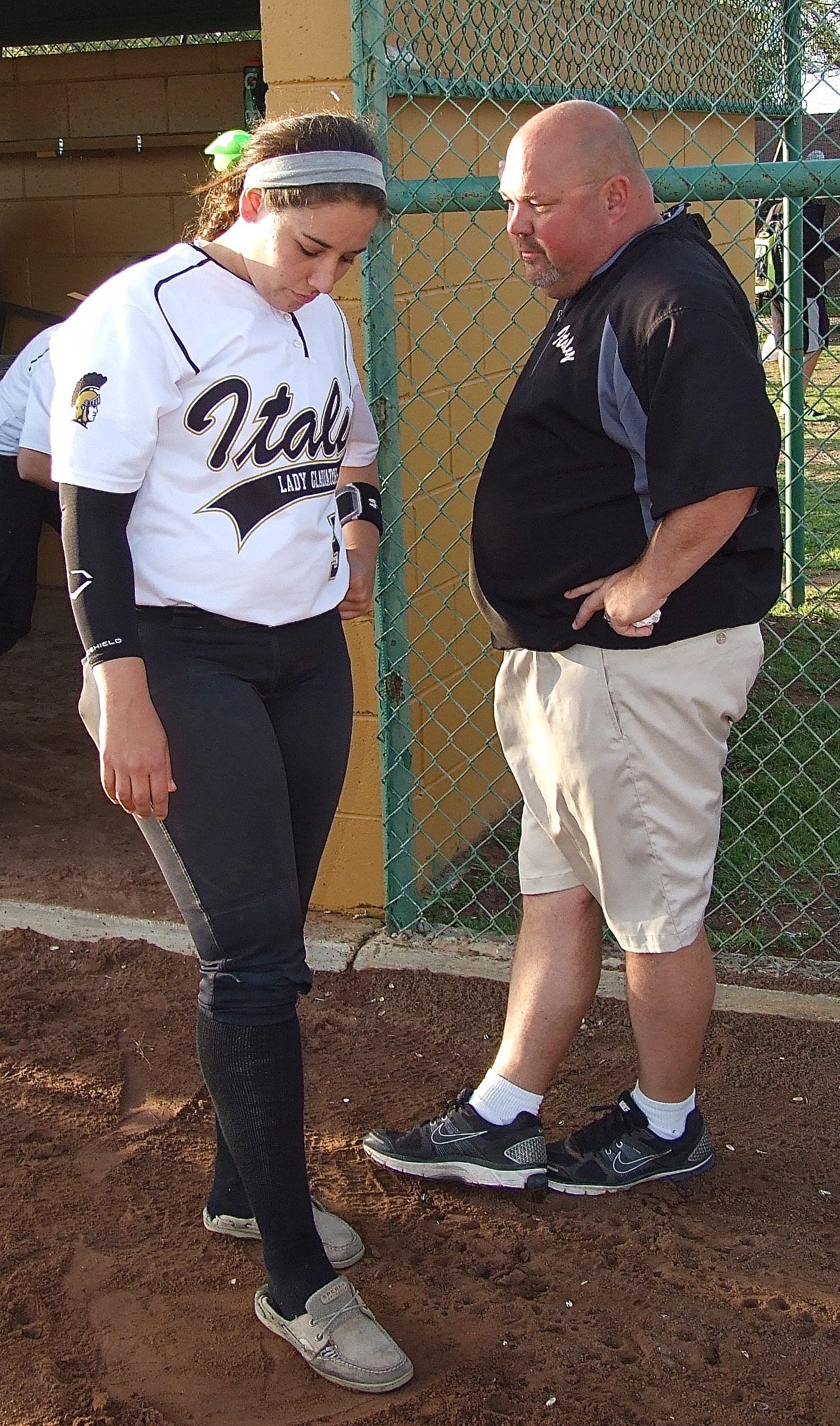 Additional images from the Lady Gladiators 13-0 win over Grand Prairie Advantage « previous story album next » Head Coach Wayne Rowe talks with his anchor, catcher Alyssa Richards(9) after the win against Grand Prairie Advantage. (Barry Byers) Download original photo