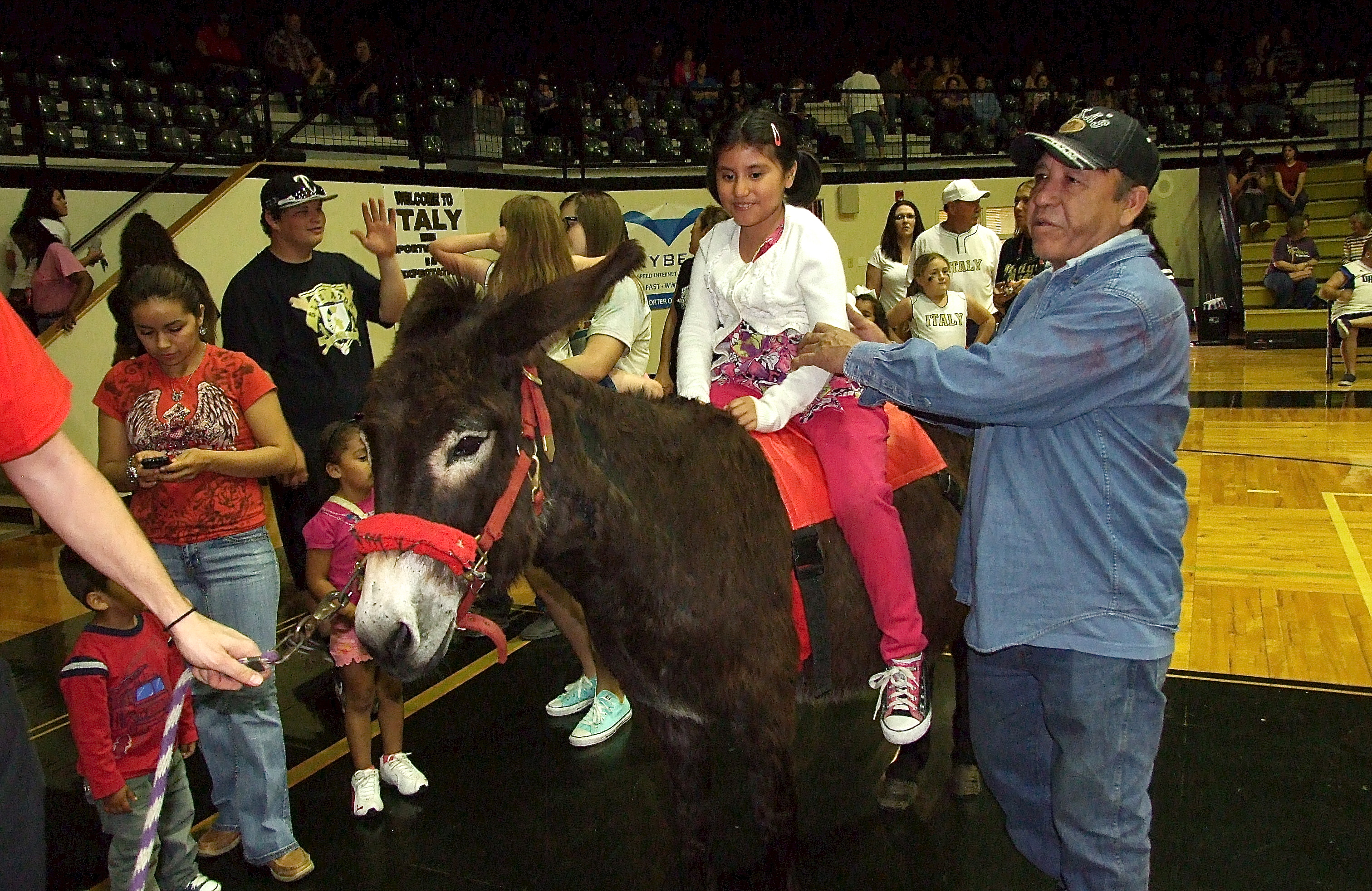 Hee-Hee-Haw! Donkey Basketball was fun for all inside Italy Coliseum « previous story album next » Scores of kids lined up to ride the donkeys during intermission. (Barry Byers) Download original photo