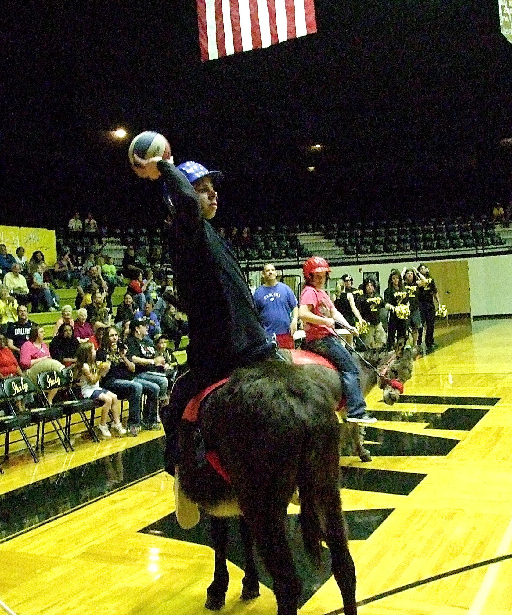 Hee-Hee-Haw! Donkey Basketball was fun for all inside Italy Coliseum « previous story album next » Italy Police officer Daniel Pitts aims and shoots hoping to score a goal for the Guns-n-Hoses team. (Barry Byers) Download original photo