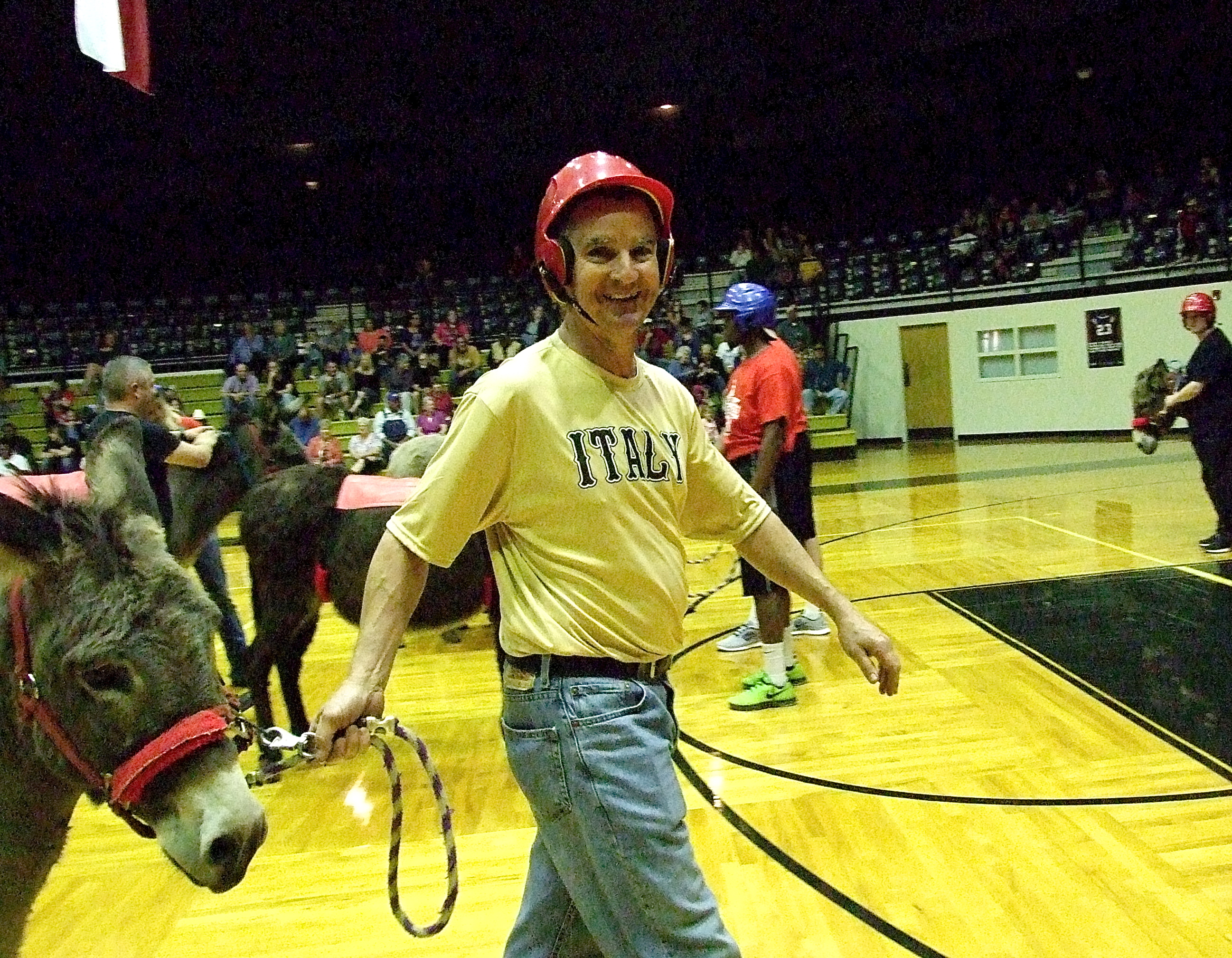 Hee-Hee-Haw! Donkey Basketball was fun for all inside Italy Coliseum « previous story album next » Stevan Varner is all smiles after scoring the first bucket of the games! (Barry Byers) Download original photo