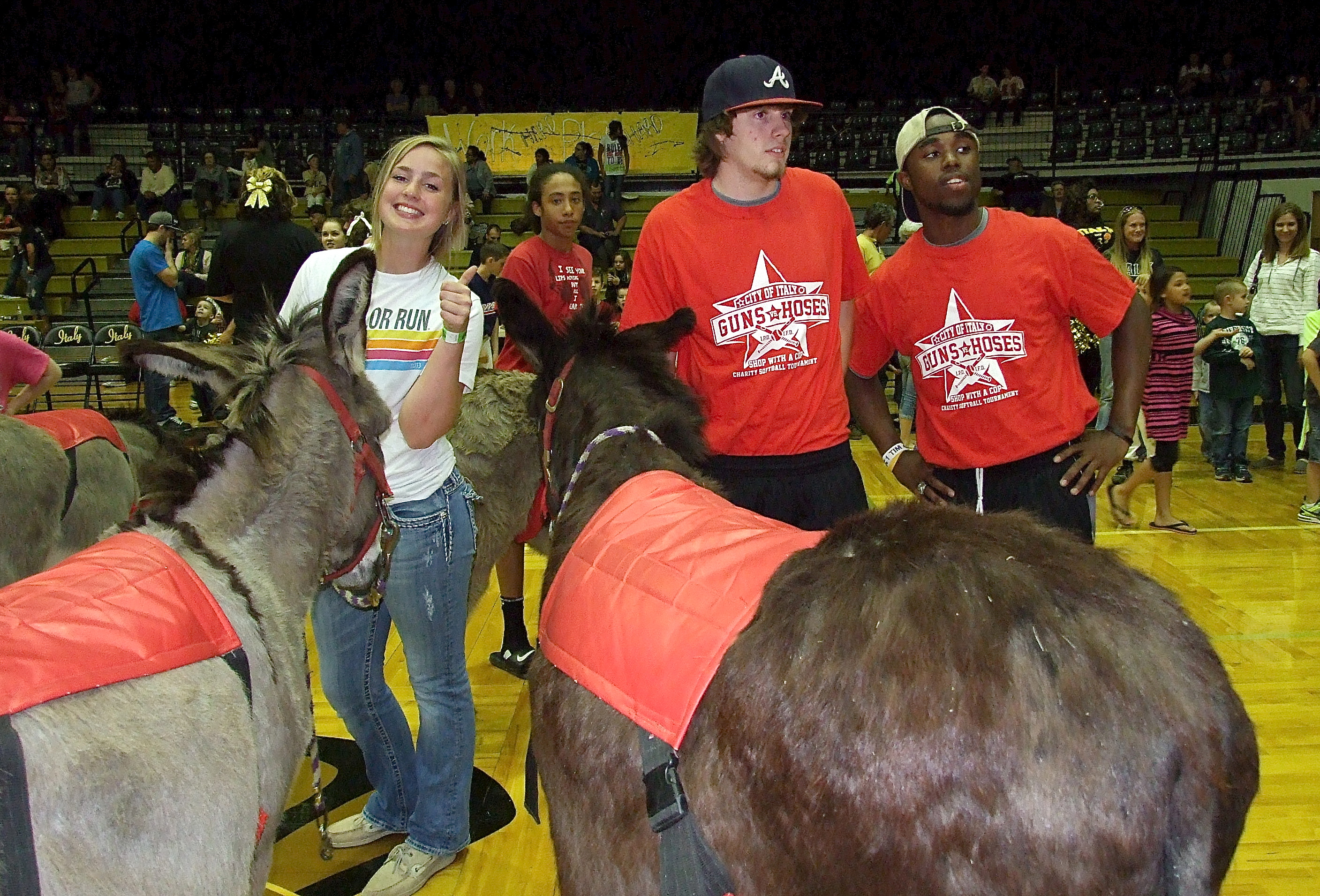 The buck begins here, donkey basketball raises money for Italy HS Band « previous story album next » Madison Washington, Devonteh Williams, Clayton Campbell and Jasenio Anderson are ready to get their arses in gear. (Barry Byers) Download original photo